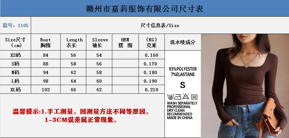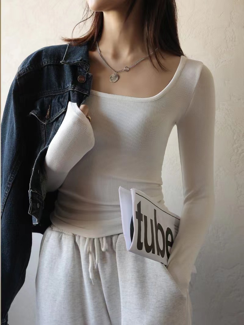 2024欧美女式T恤亚马逊跨境 方领罗纹面料秋打底衫黑色低领女T恤스토어 가기