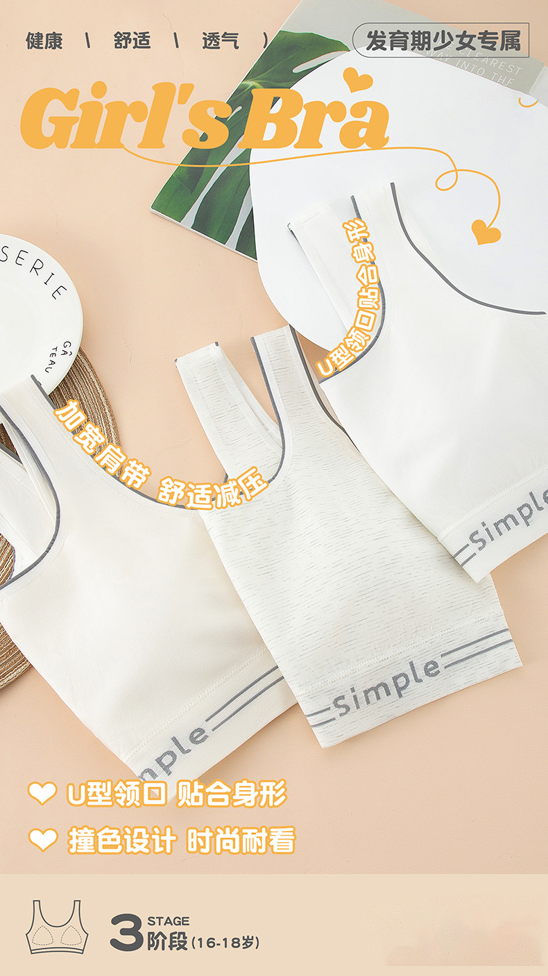 여자 브라 발달 속옷 3 단계 여자 학생 중학생 고등학생 여자 고정 컵 작은 조끼스토어 가기