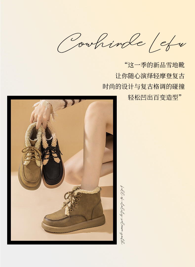 양고기 울 정품 가죽 플랫 스노우 부츠 여성의 2024 겨울 새 기모 두꺼운 짧은 부츠 레이스 업 따뜻한 코튼 신발스토어 가기