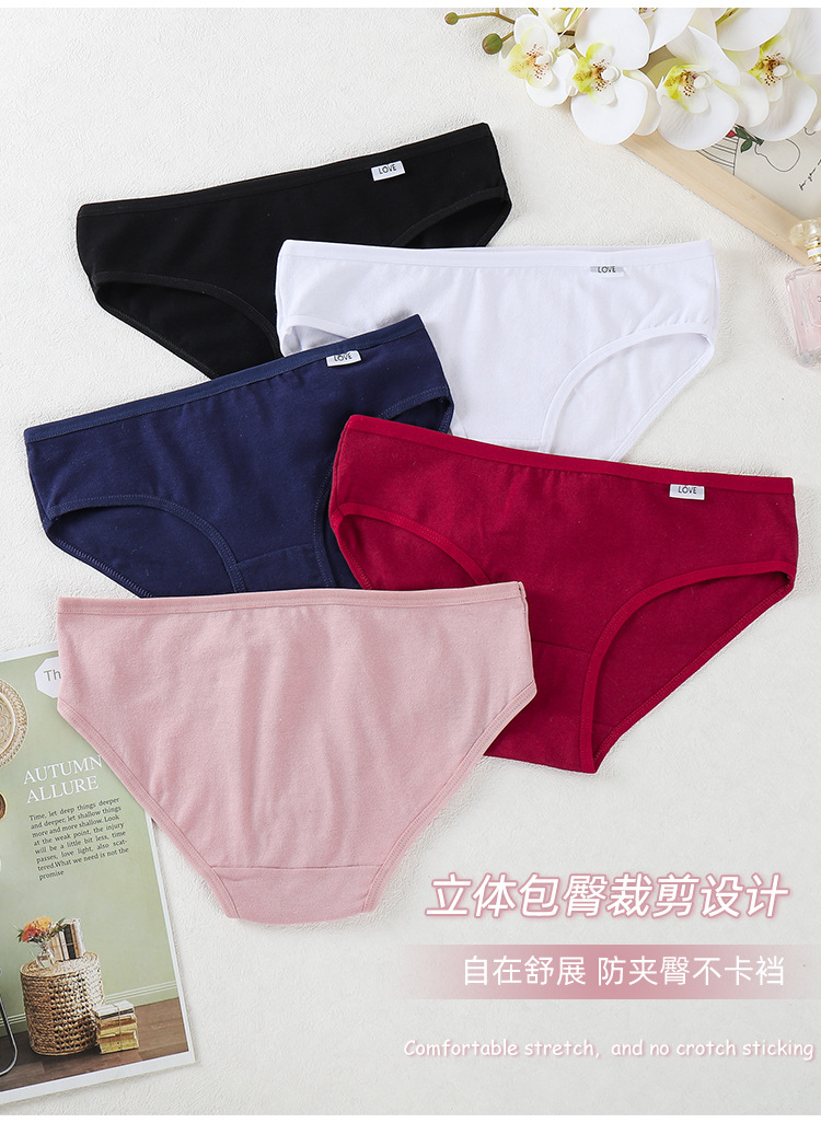 인기 수출용 여성용 순면 팬티, 큰 사이즈, 중간 허리, 단색, 유럽 및 미국 스타일 삼각 팬티, 여성용 순면