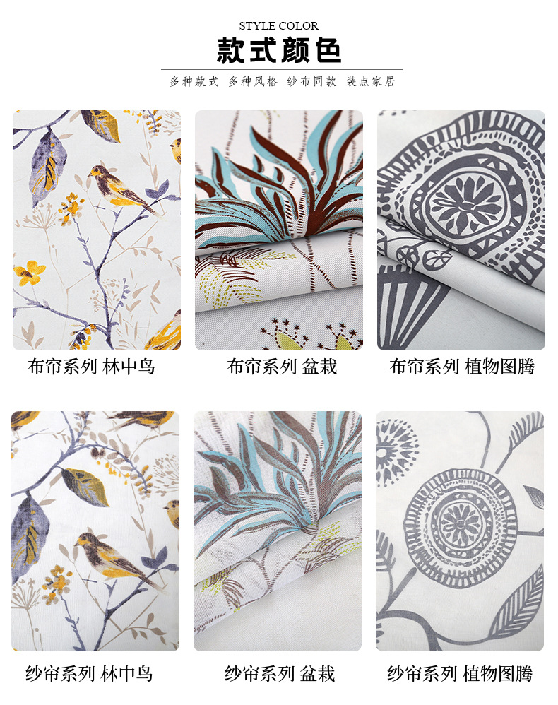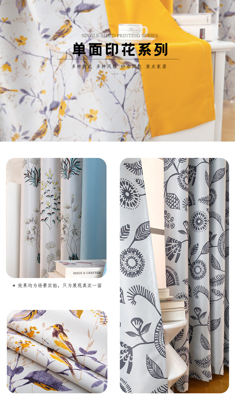 새로운 대외 무역 커튼 간단한 현대 Ins 스타일 공장 인쇄 색상 일치 커튼 단면 인쇄 마감 커튼