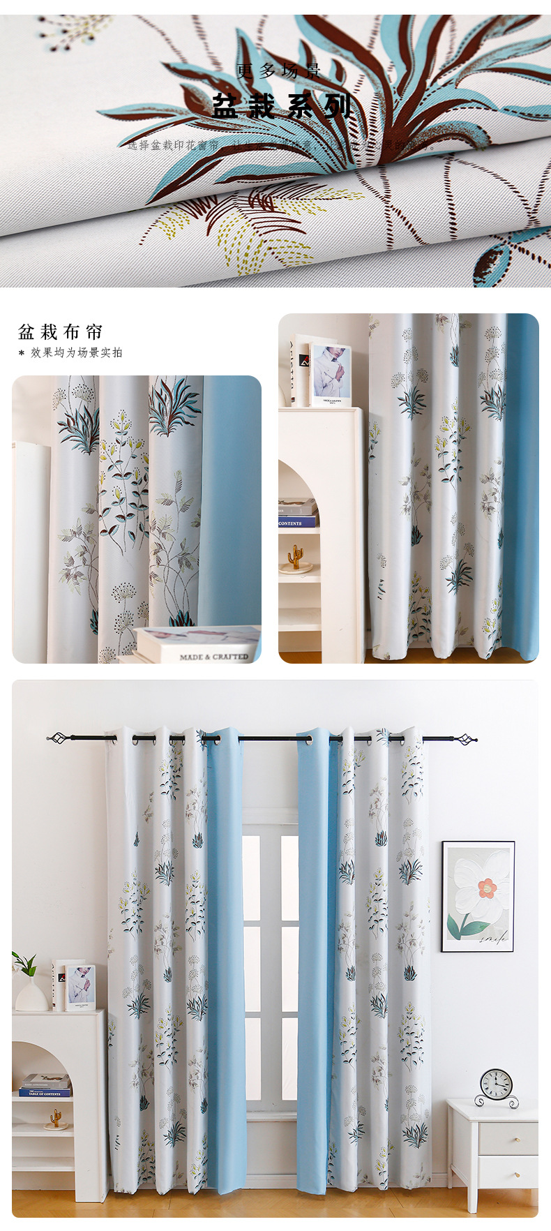 새로운 대외 무역 커튼 간단한 현대 Ins 스타일 공장 인쇄 색상 일치 커튼 단면 인쇄 마감 커튼스토어 가기