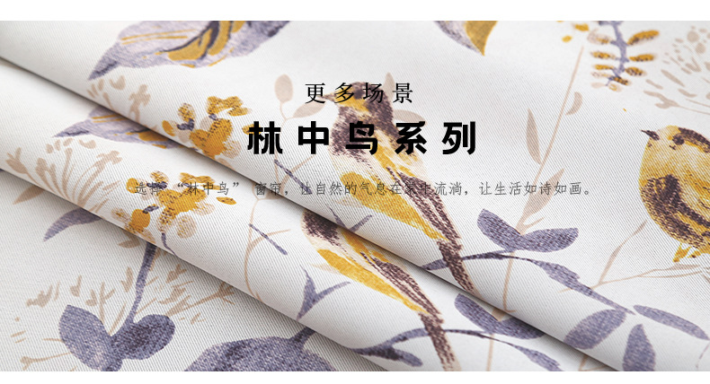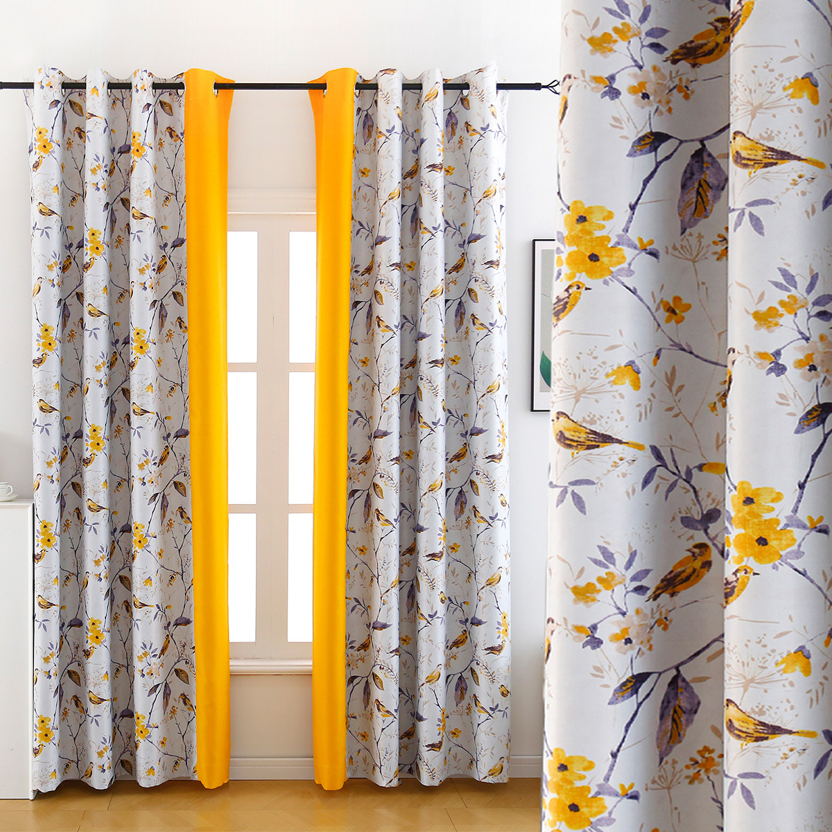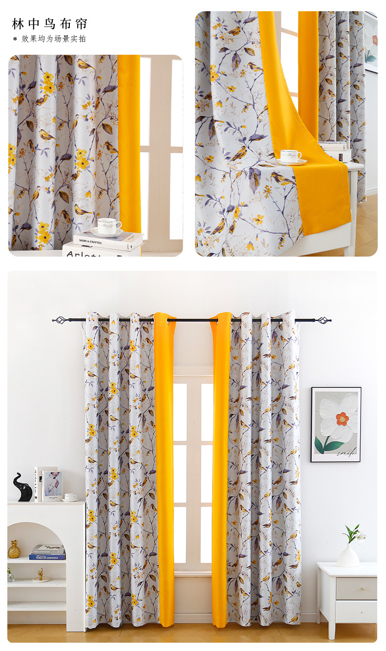 • 노란 천 + 숲 속의 새 배색 커튼 [펀칭]