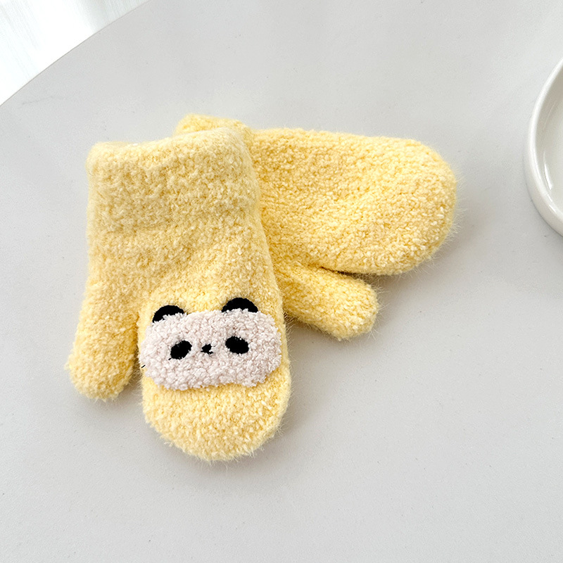 어린이 장갑 새로운 귀여운 만화 곰 아기 소년과 소녀 따뜻한 두꺼운 더블 레이어 목과 손가락 모든 포함 겨울