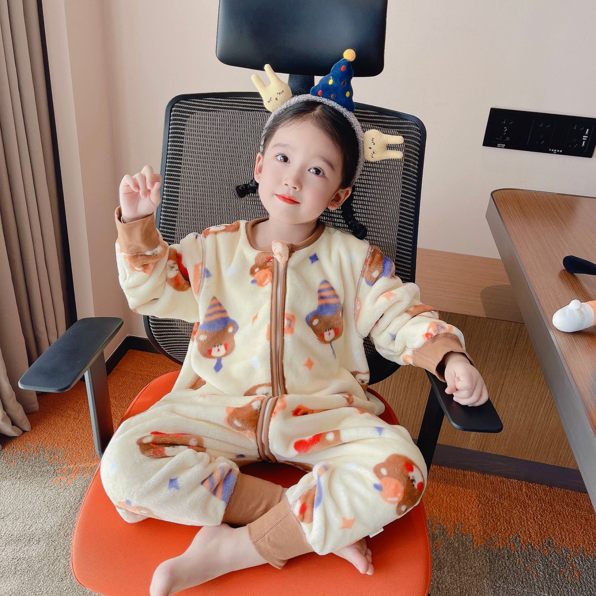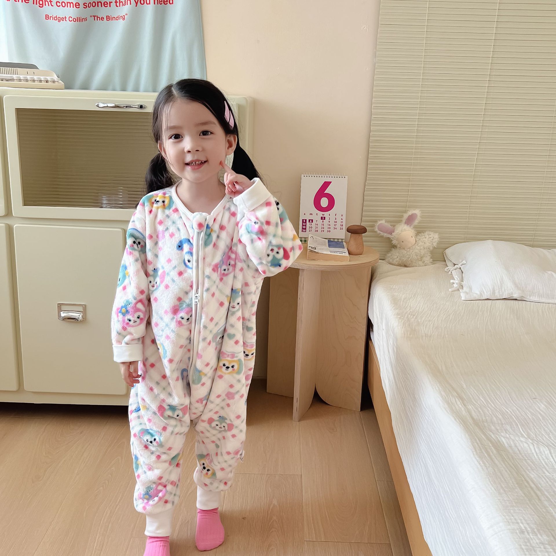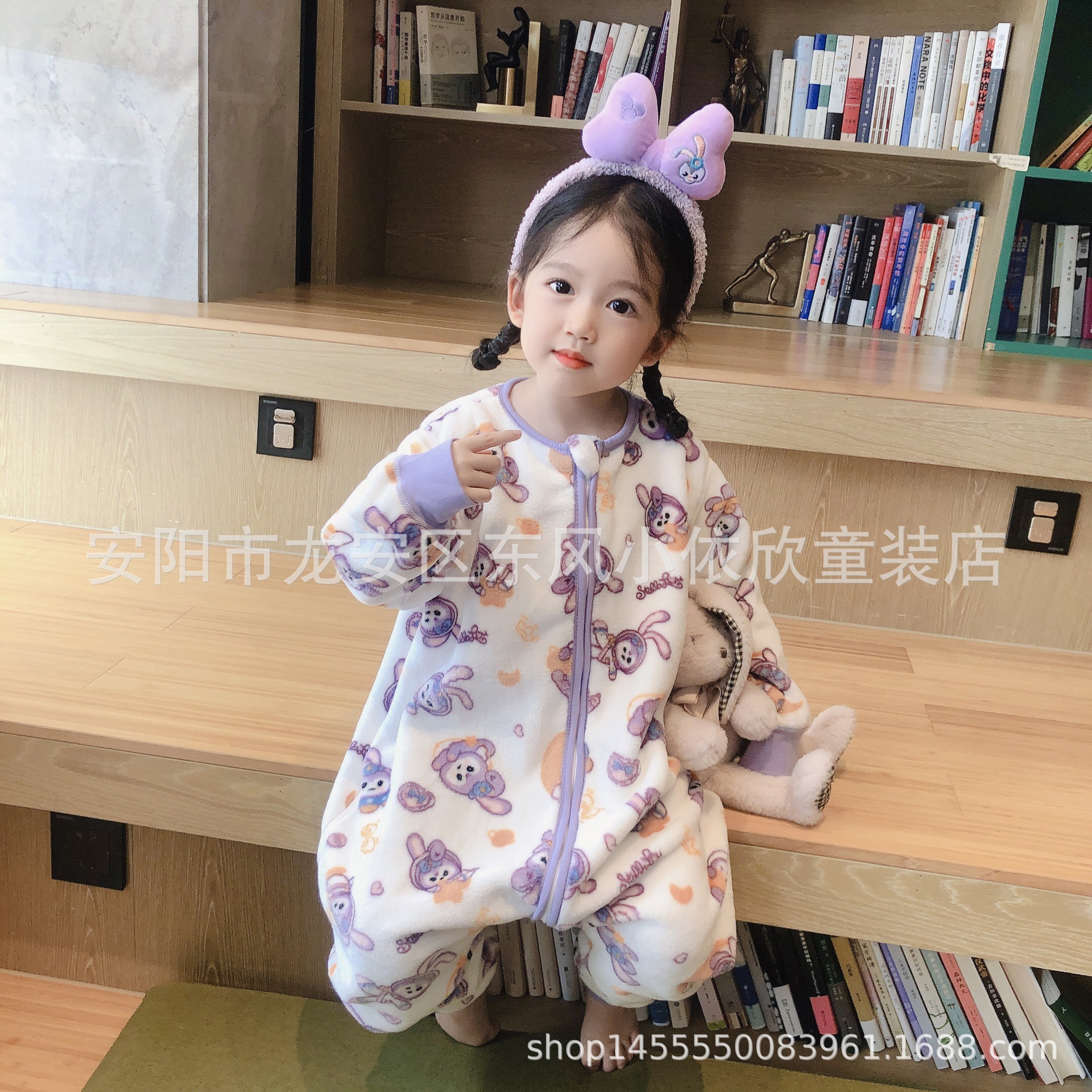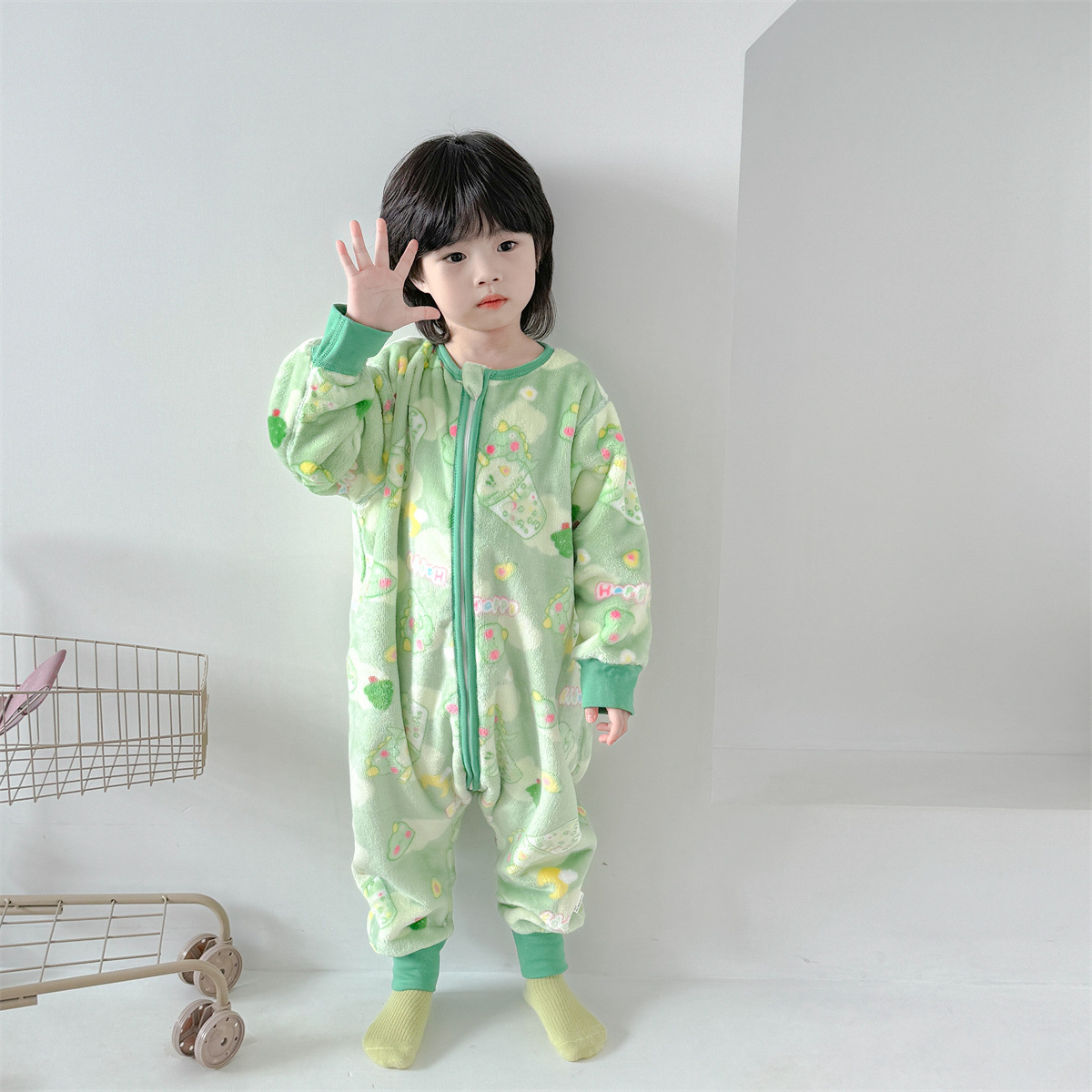 가을과 겨울 새로운 어린이의 원활한 두꺼운 플란넬 다리 침낭 점프 수트 킥 방지 퀼트 (많은 수의 재고)스토어 가기