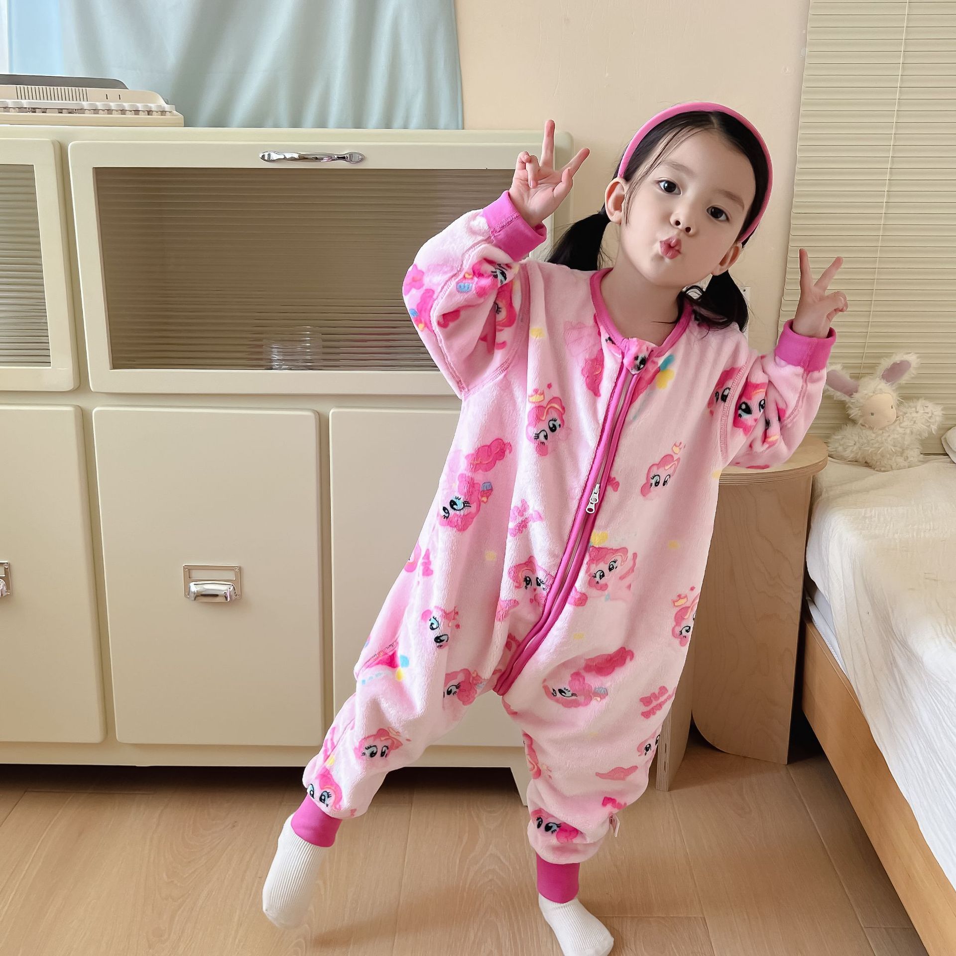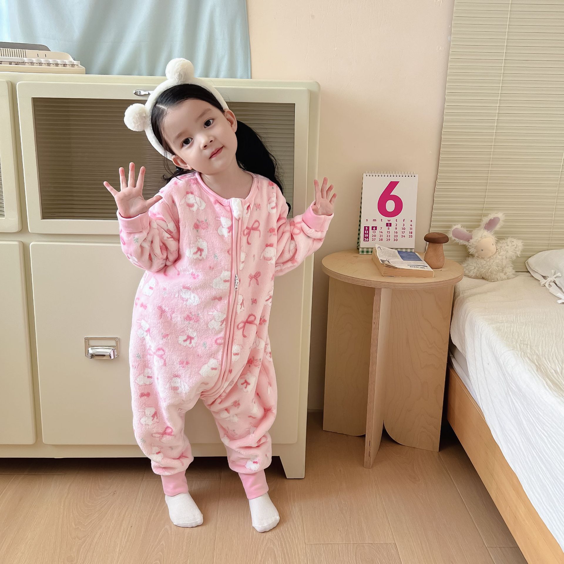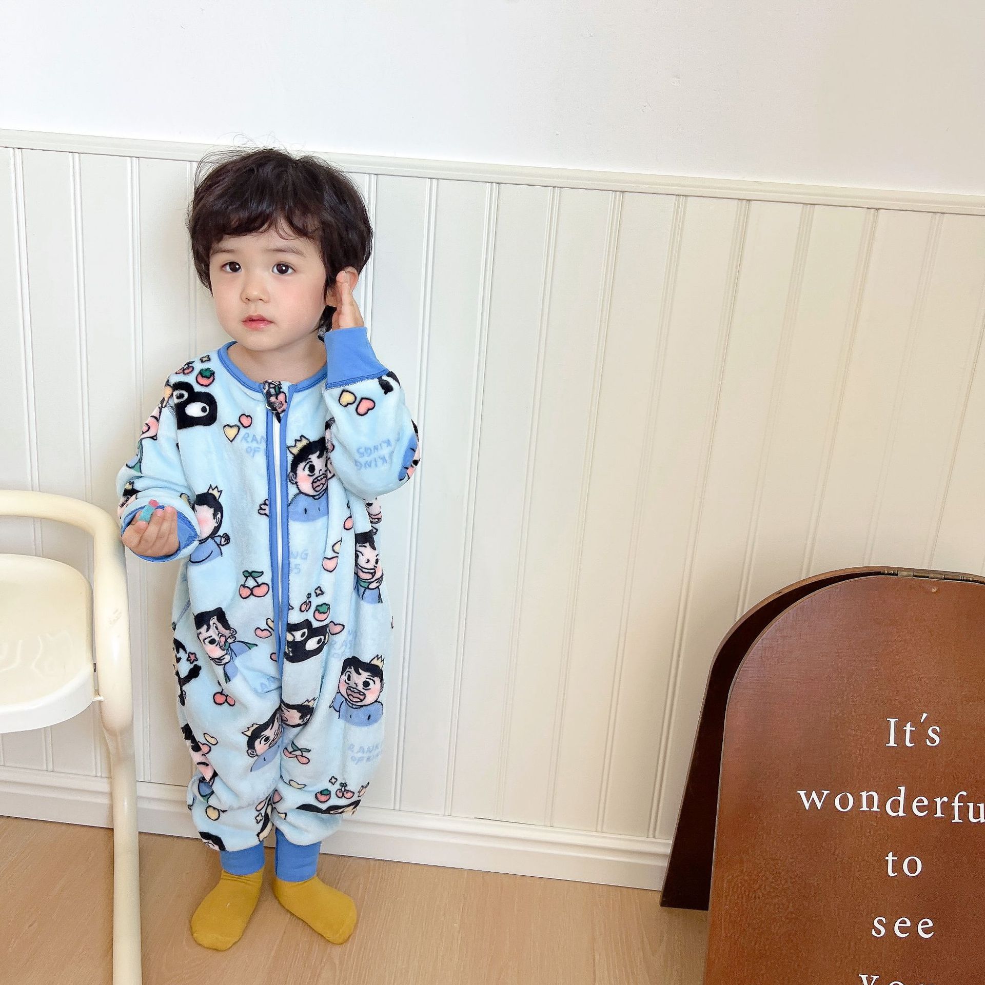 가을과 겨울 새로운 어린이의 원활한 두꺼운 플란넬 다리 침낭 점프 수트 킥 방지 퀼트 (많은 수의 재고)스토어 가기
