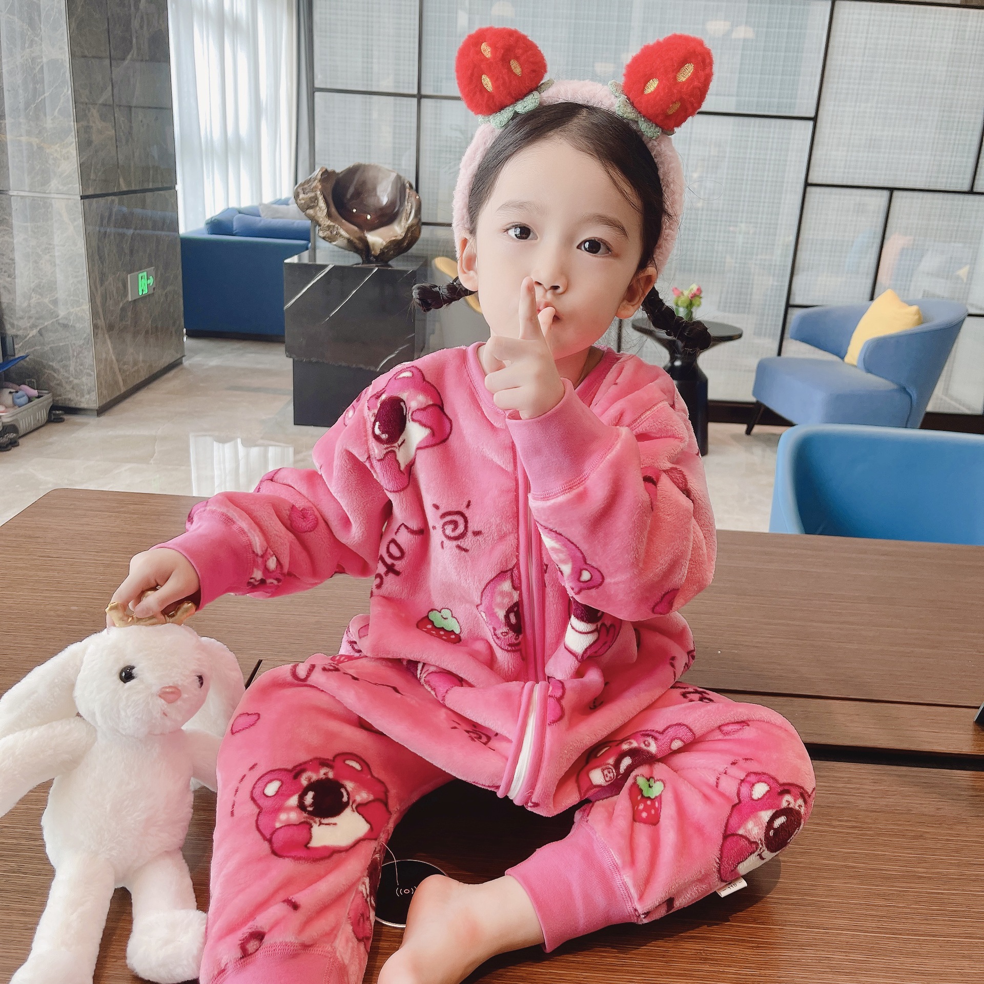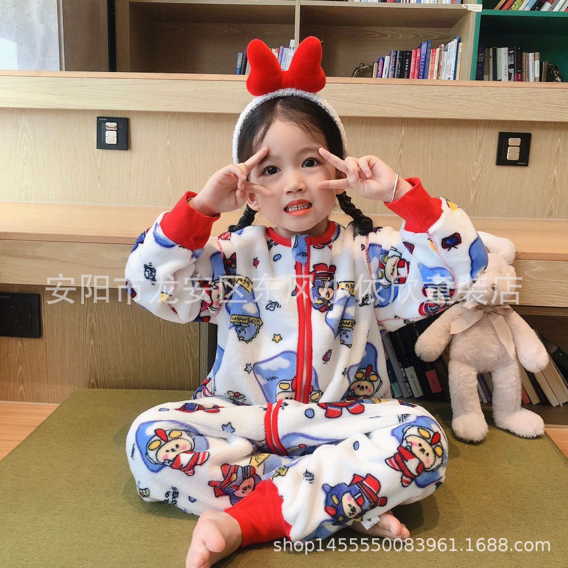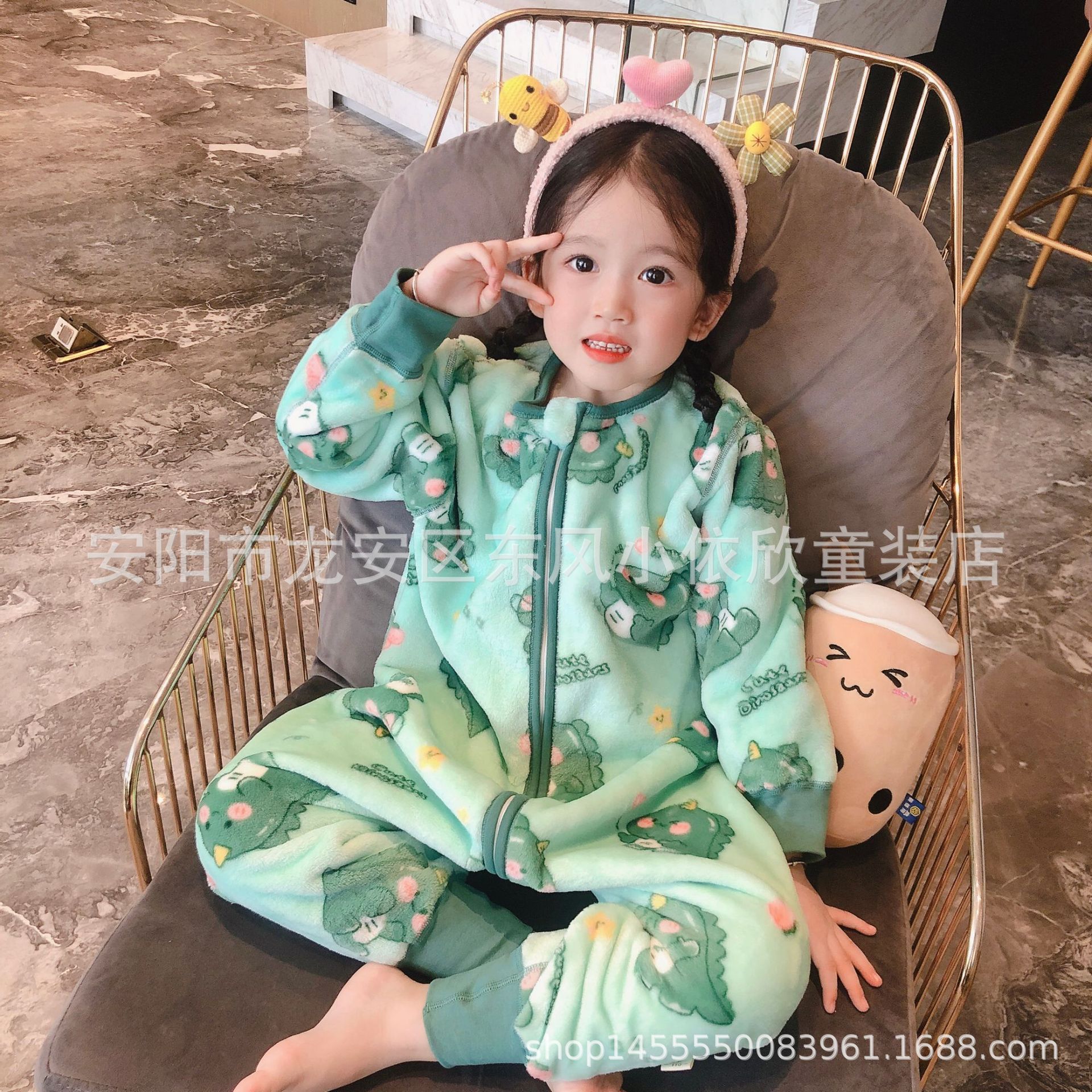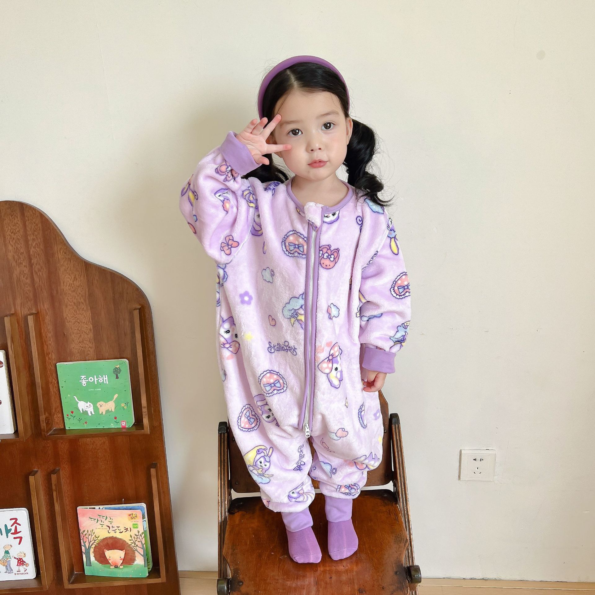 가을과 겨울 새로운 어린이의 원활한 두꺼운 플란넬 다리 침낭 점프 수트 킥 방지 퀼트 (많은 수의 재고)스토어 가기