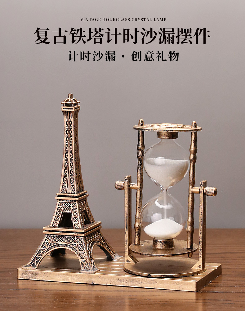 • 빈티지 구리 파리 타워 모래시계