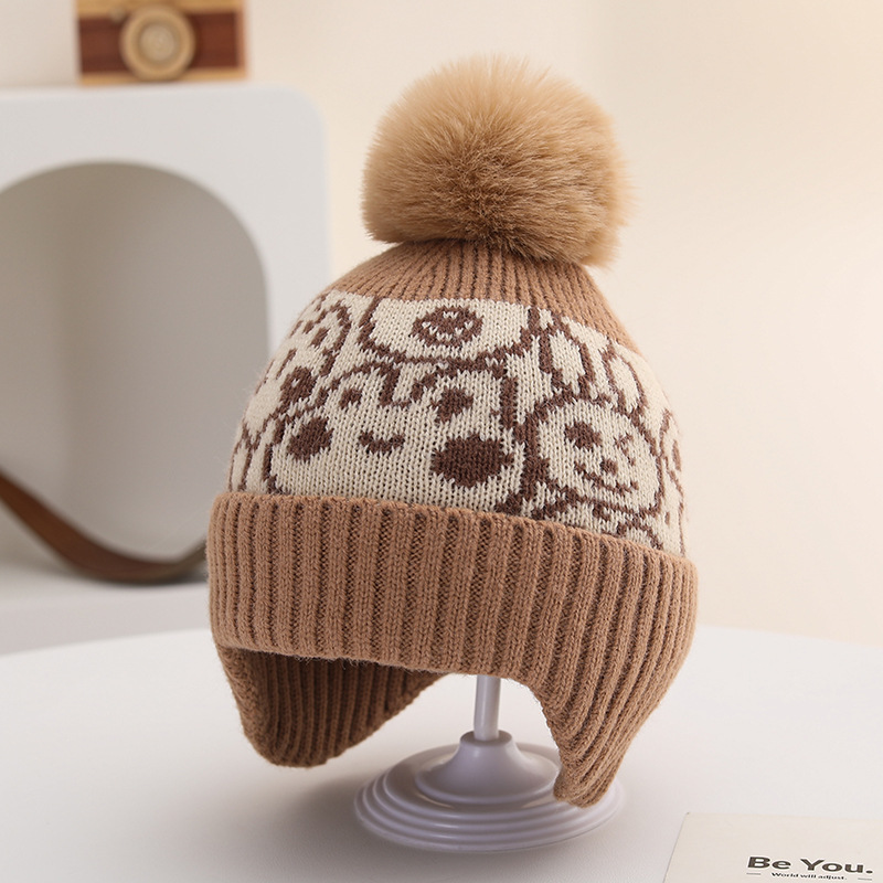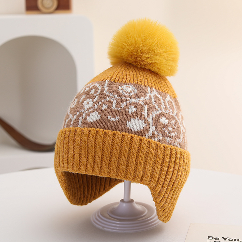 어린이 따뜻한 모자 겨울 남자의 보물 귀 보호 모자 2-6 년 된 니트 모자 겨울 자카드 면화 어린이 소녀
