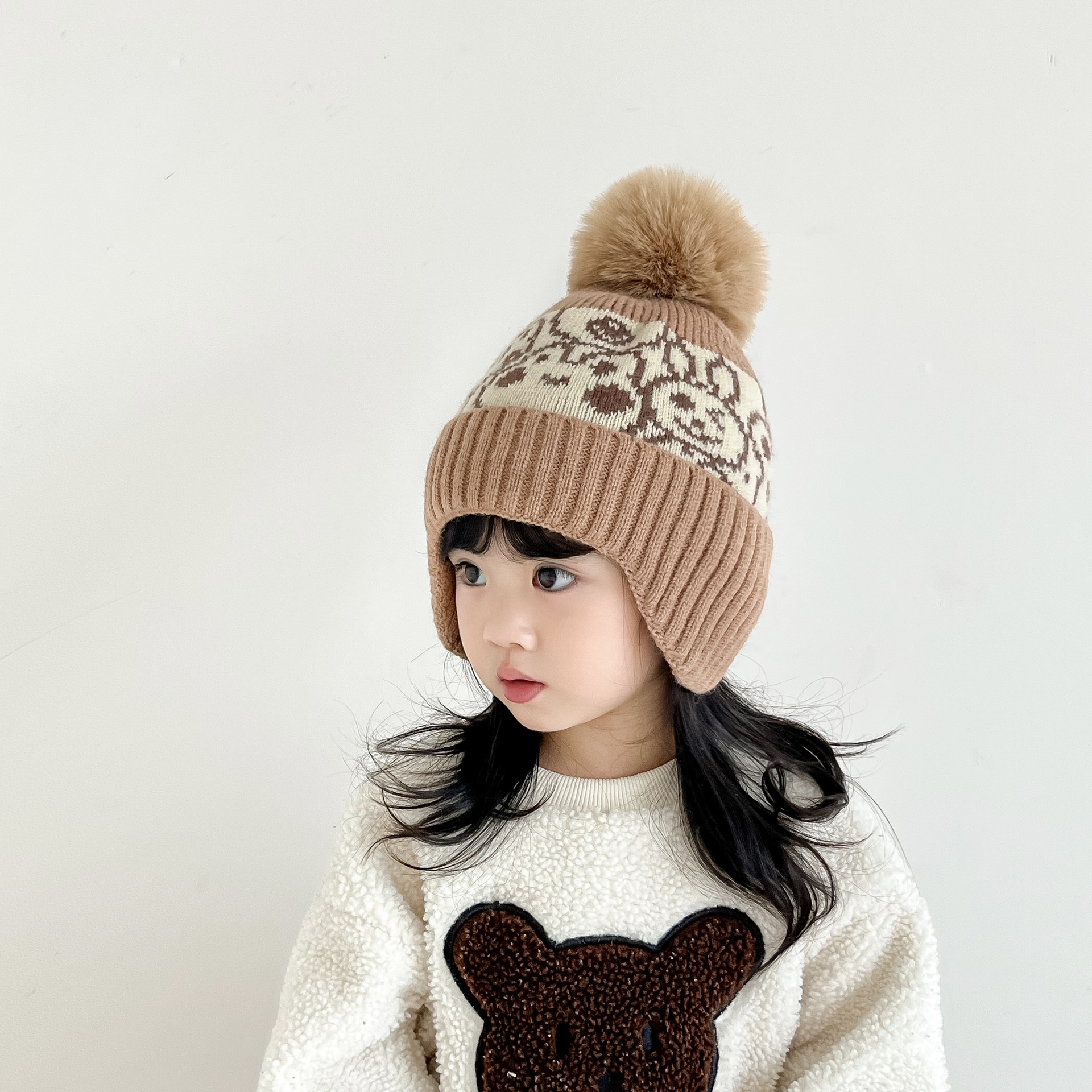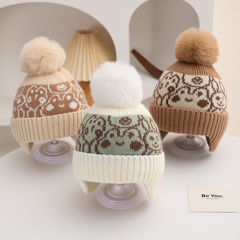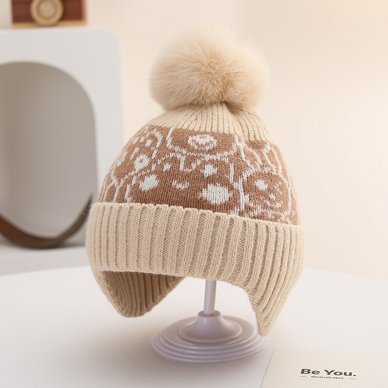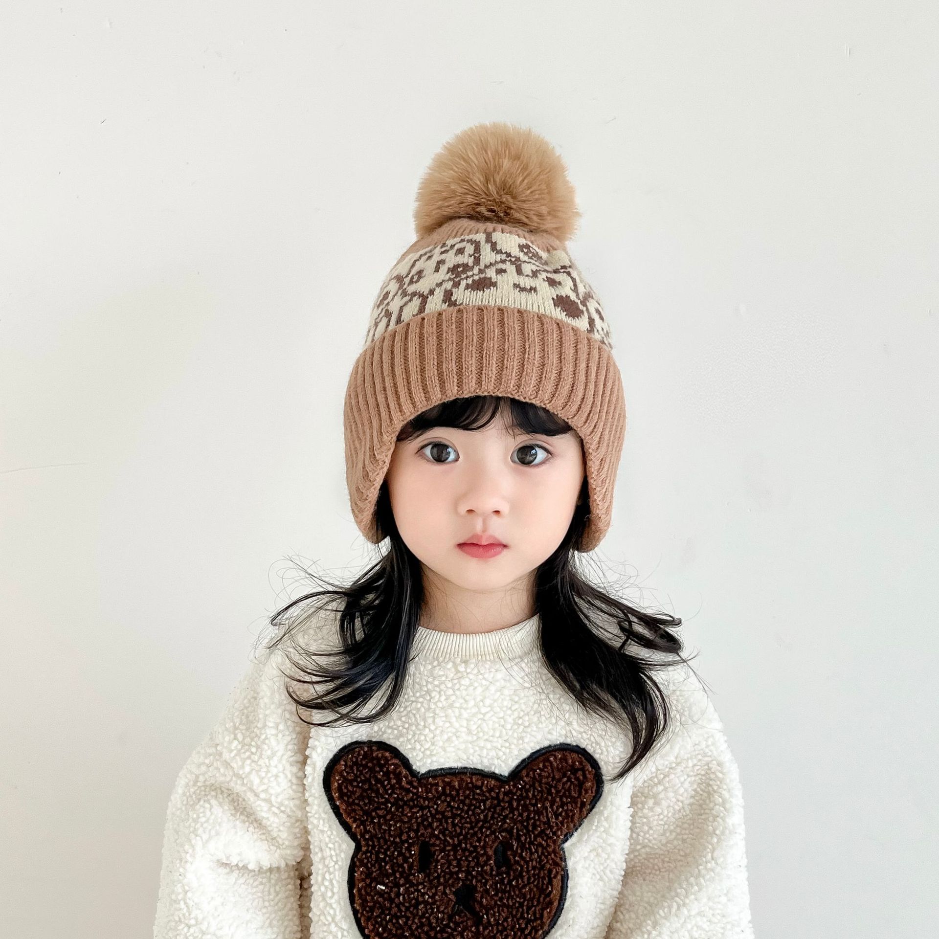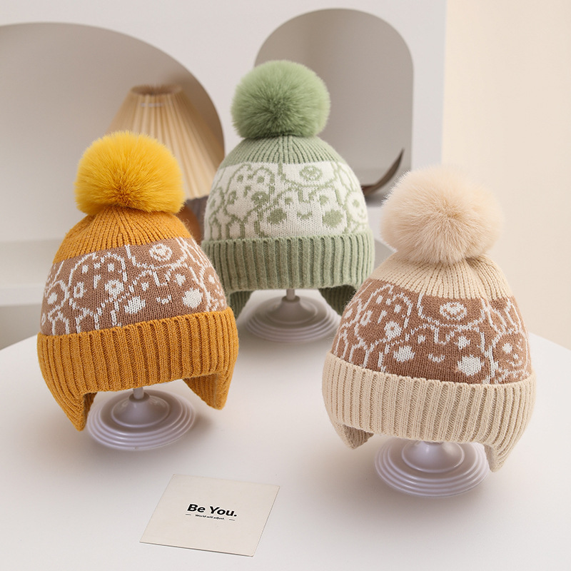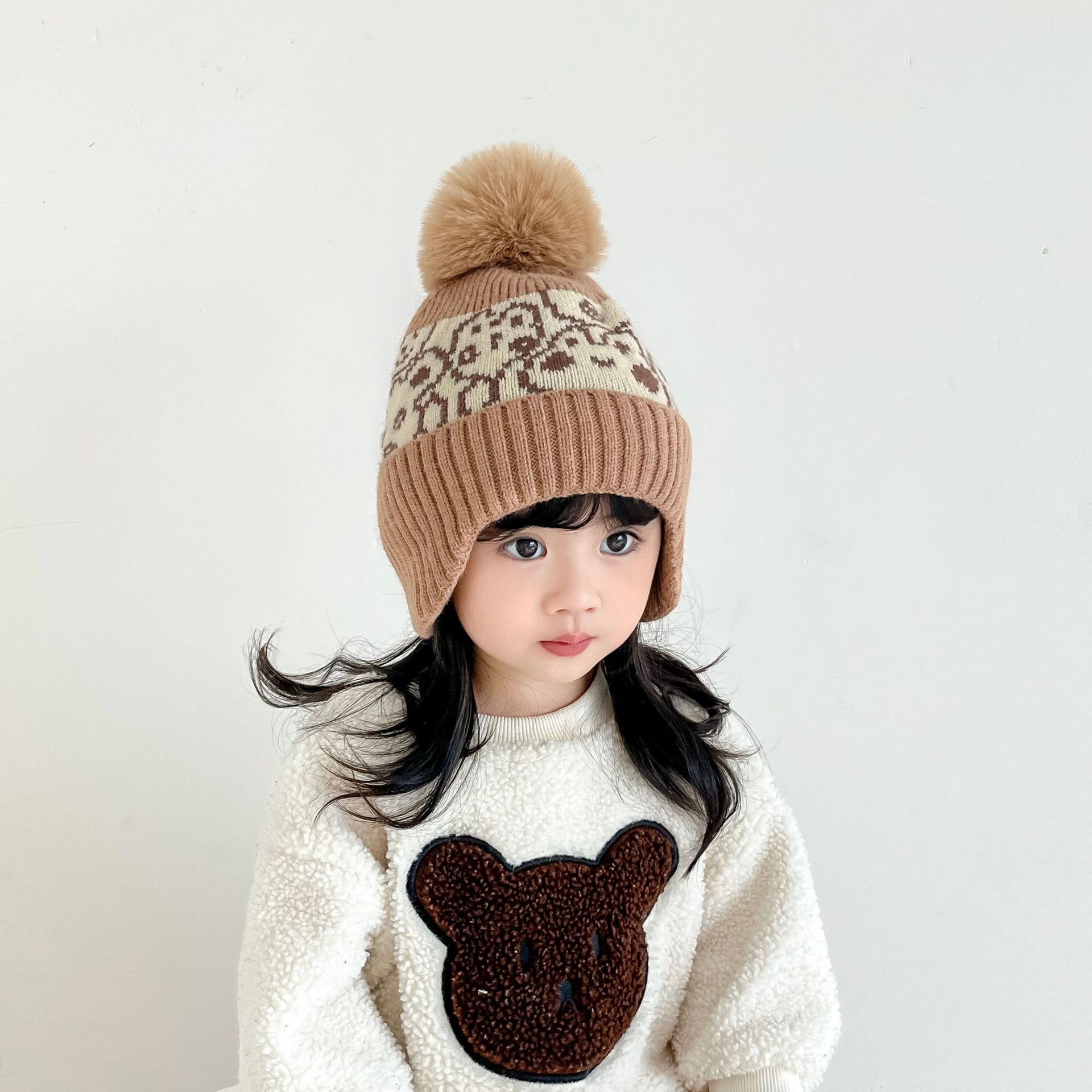 어린이 따뜻한 모자 겨울 남자의 보물 귀 보호 모자 2-6 년 된 니트 모자 겨울 자카드 면화 어린이 소녀스토어 가기