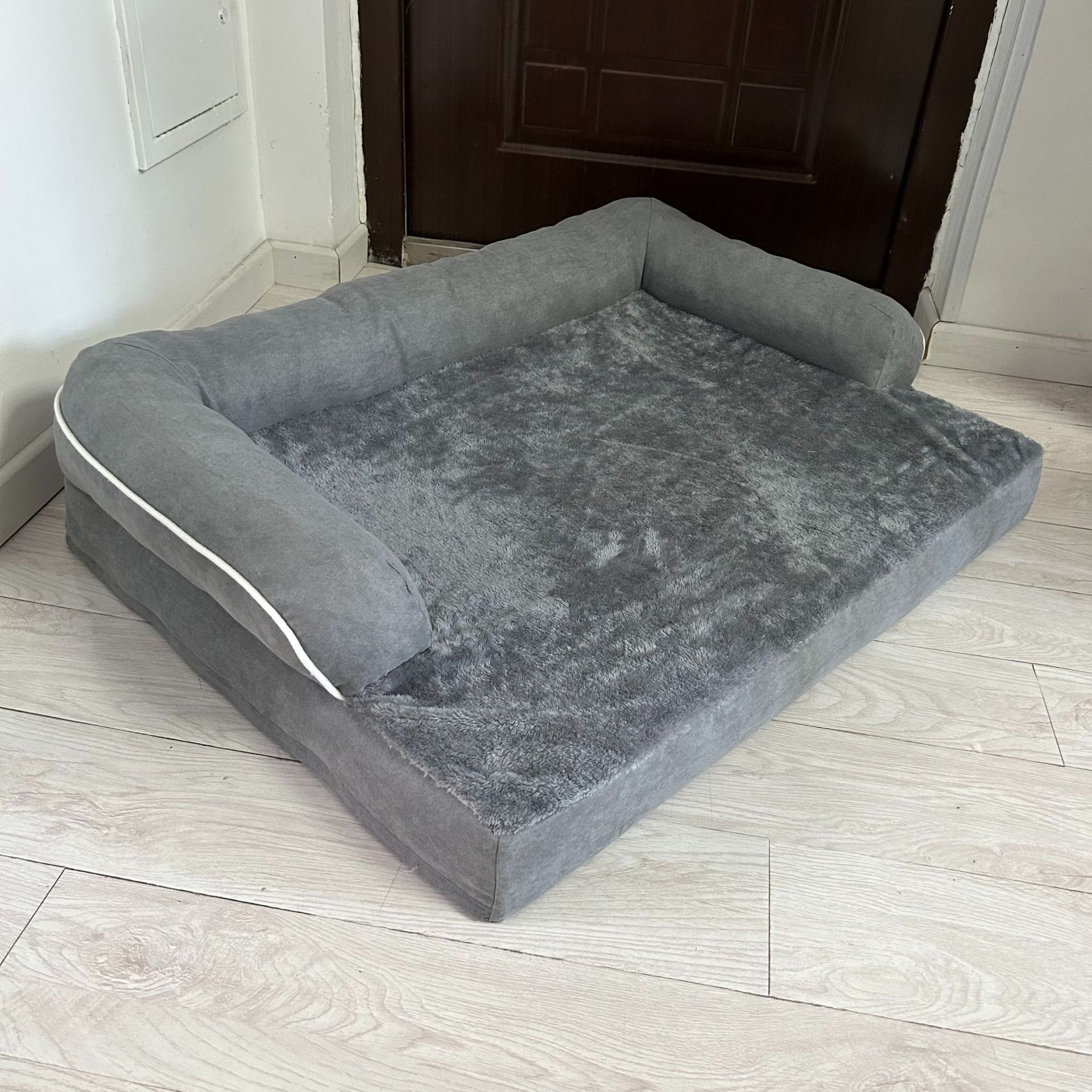 맞춤형 스폰지 개집 소파 침대 아마존 대형 애완 동물 침대 회색 북극 벨벳 이동식 및 세탁 가능한 실내 개집스토어 가기