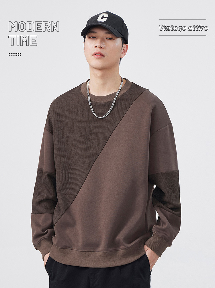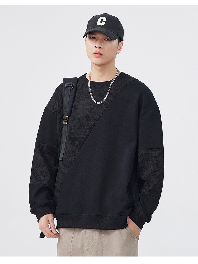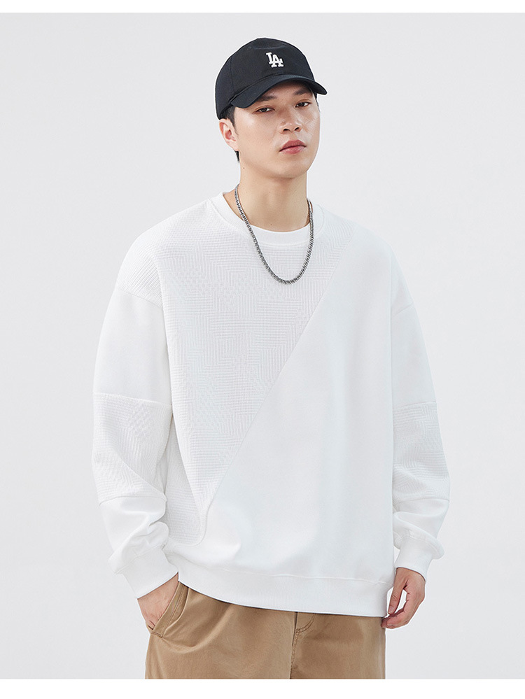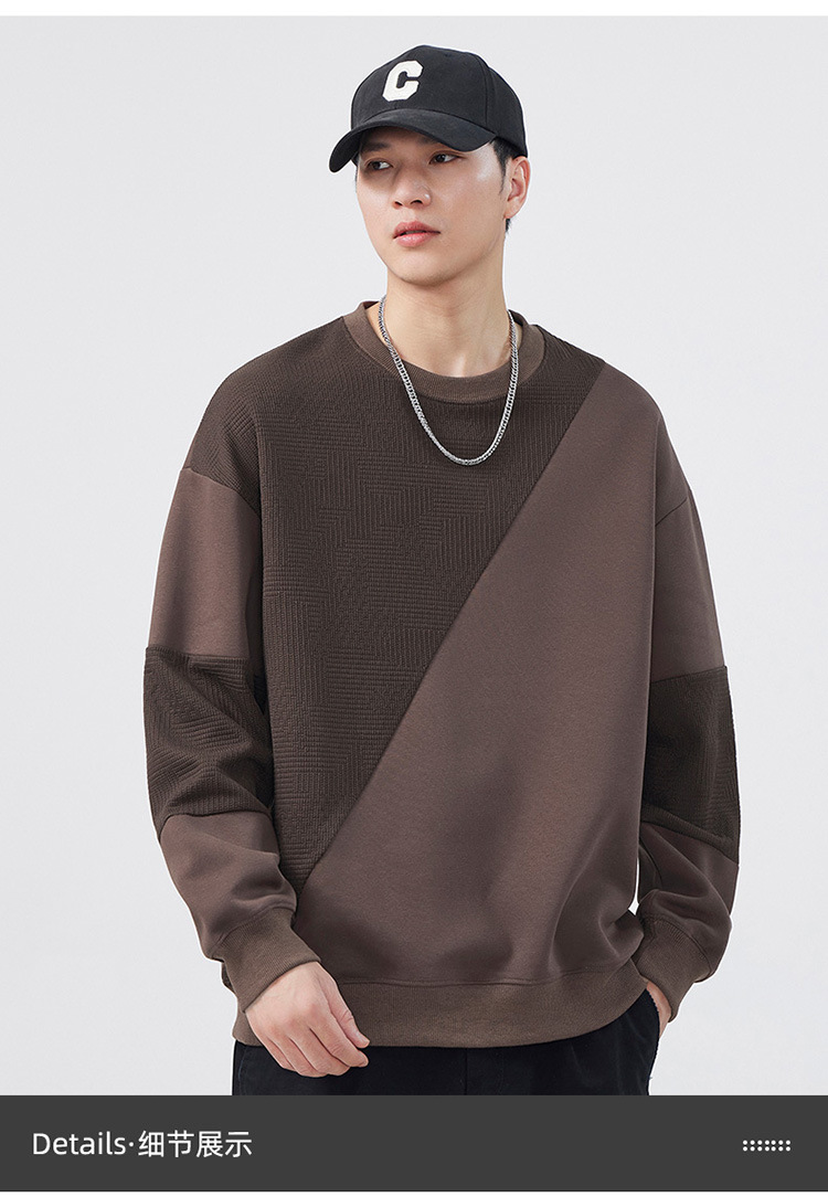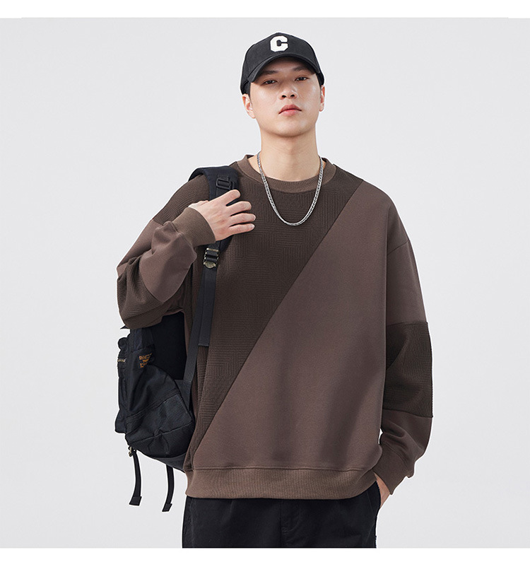 디자인 센스 스티칭 대조 컬러 라운드 넥 스웨트 셔츠 남성용 봄 패션 브랜드 자카드 텍스처 탑 루즈 캐주얼 재킷