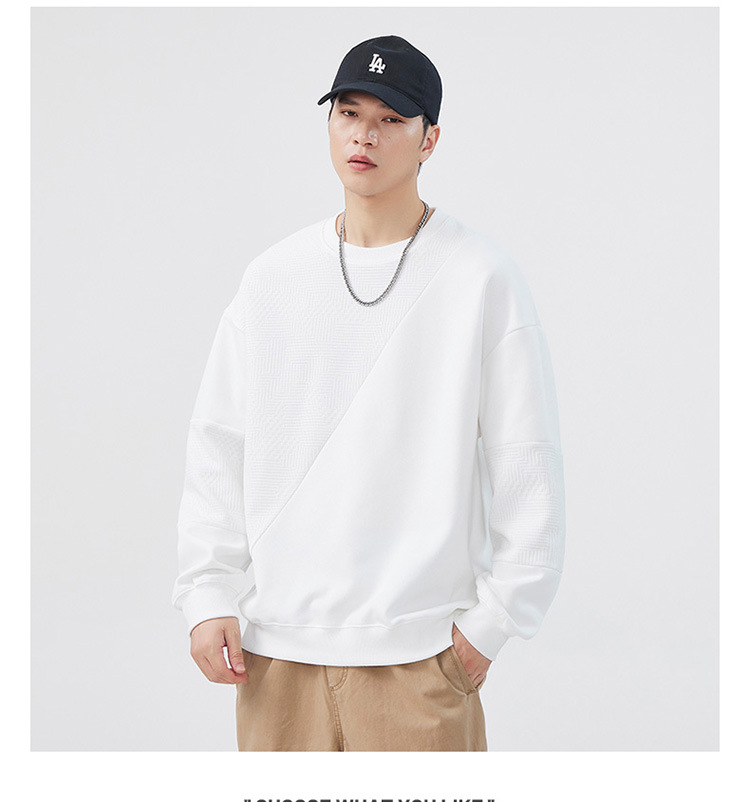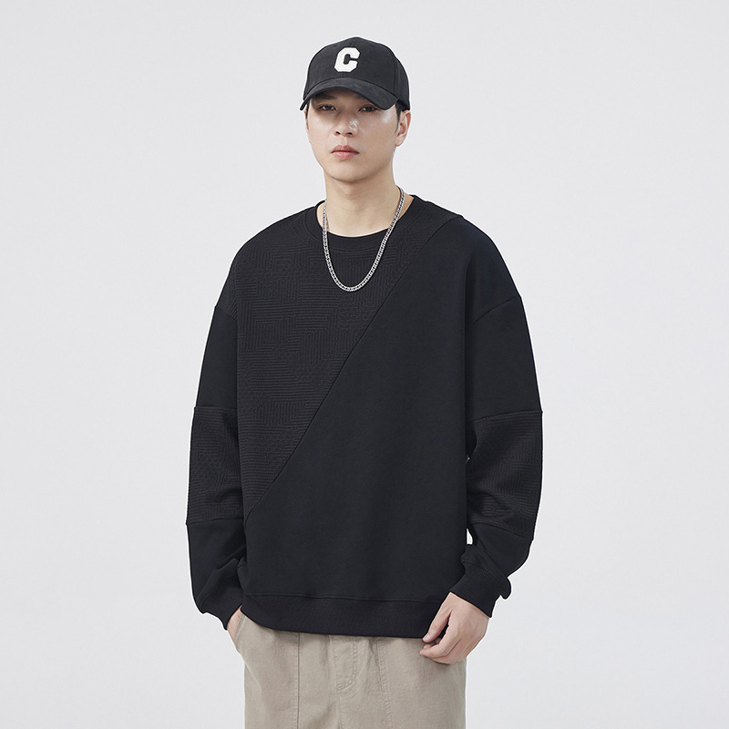 디자인 센스 스티칭 대조 컬러 라운드 넥 스웨트 셔츠 남성용 봄 패션 브랜드 자카드 텍스처 탑 루즈 캐주얼 재킷스토어 가기