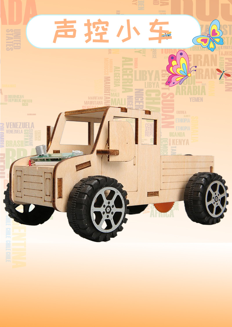 증기 과학 음성 제어 자동차 어린이 과학 기술 DIY 수제 자동차 소재 패키지 학생 교육 장난감스토어 가기