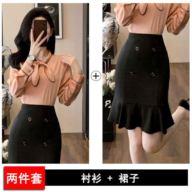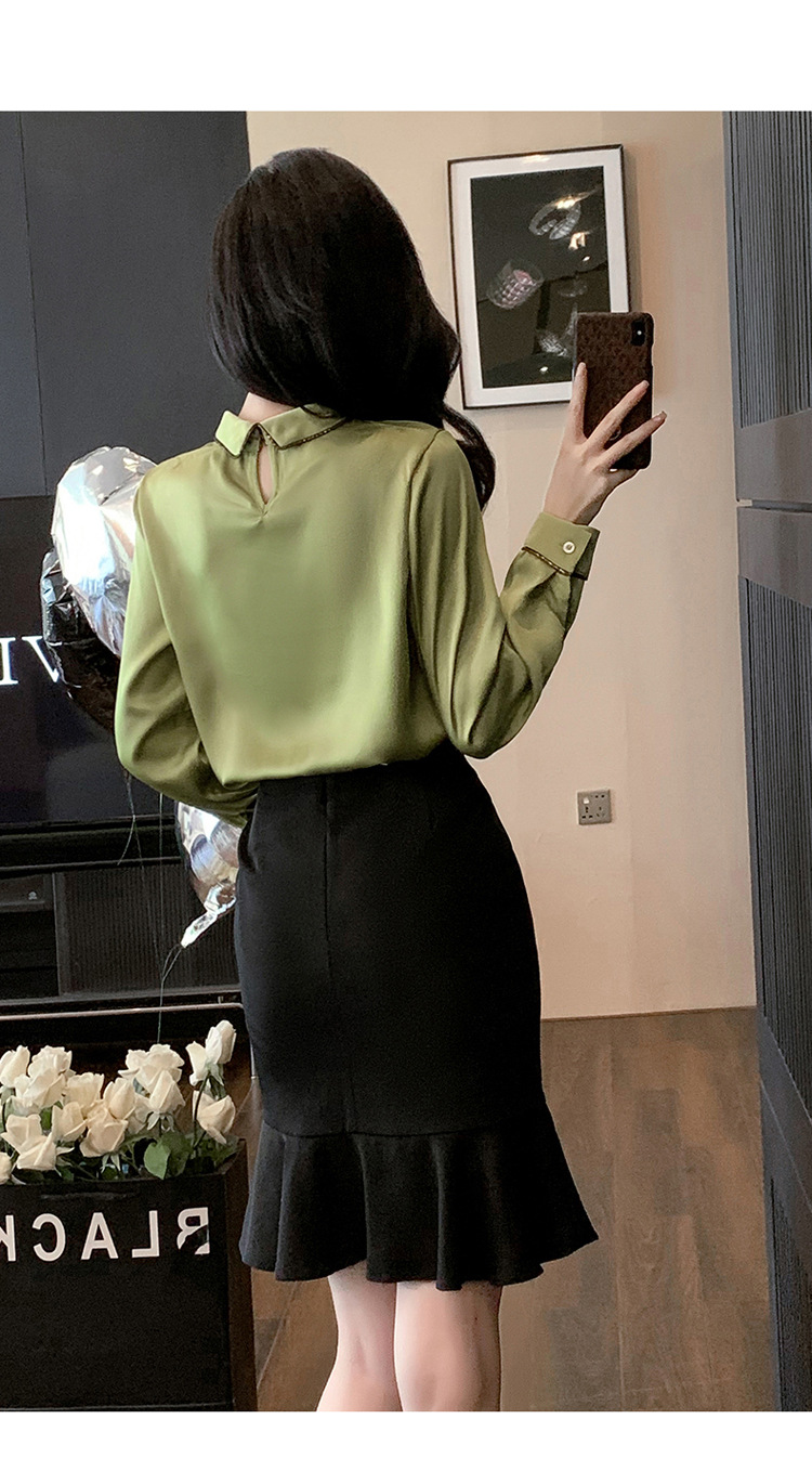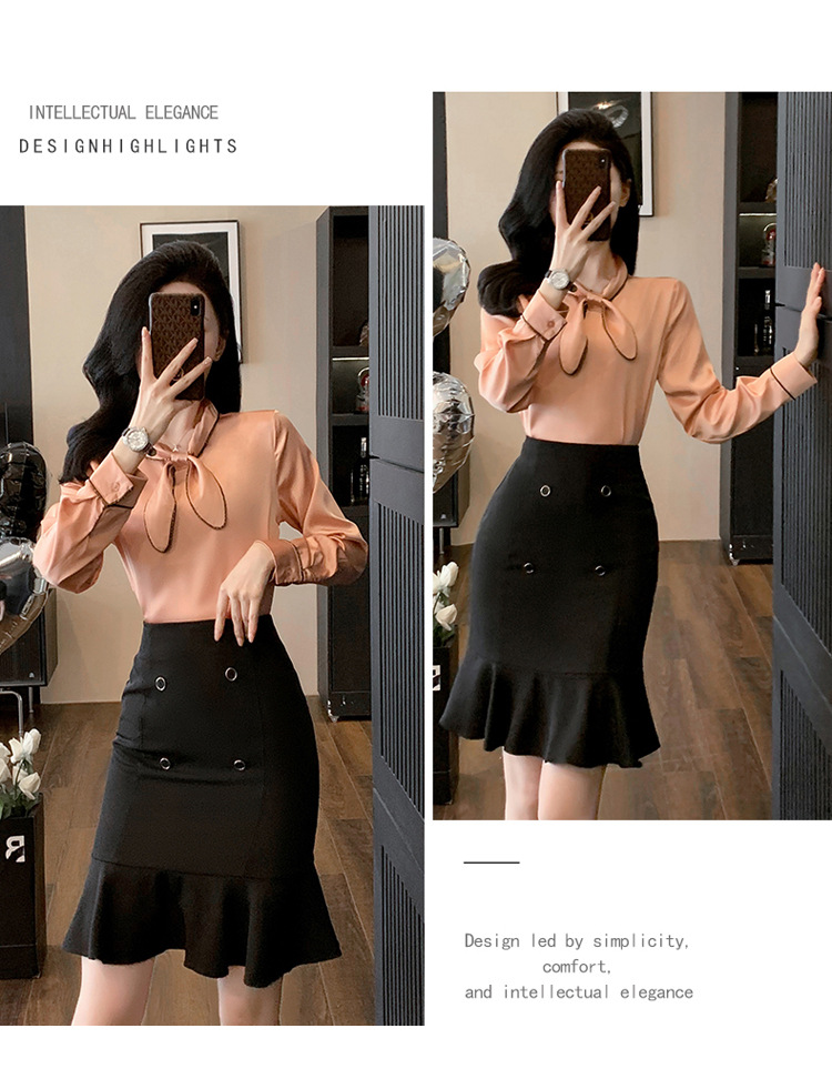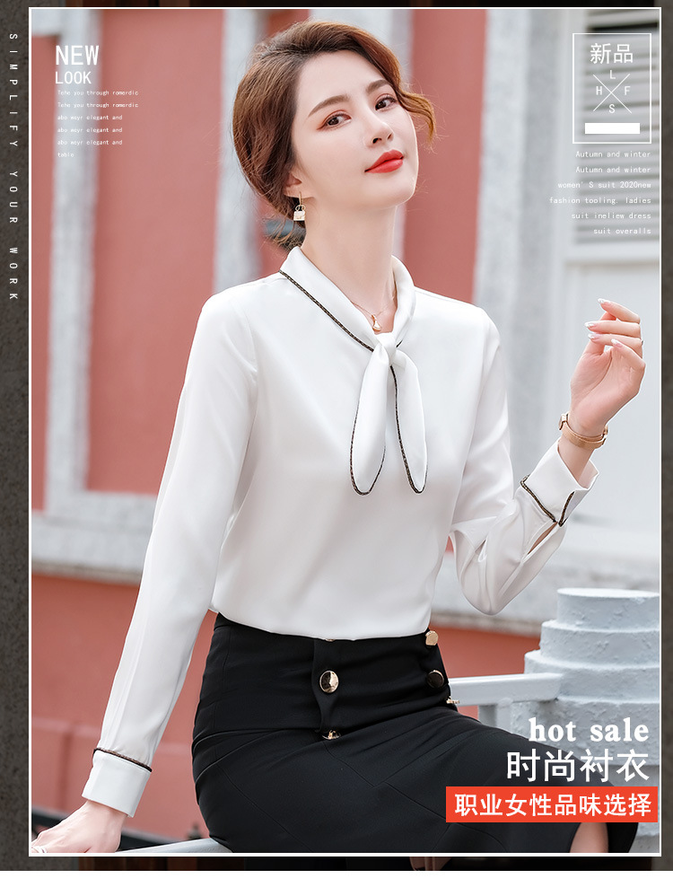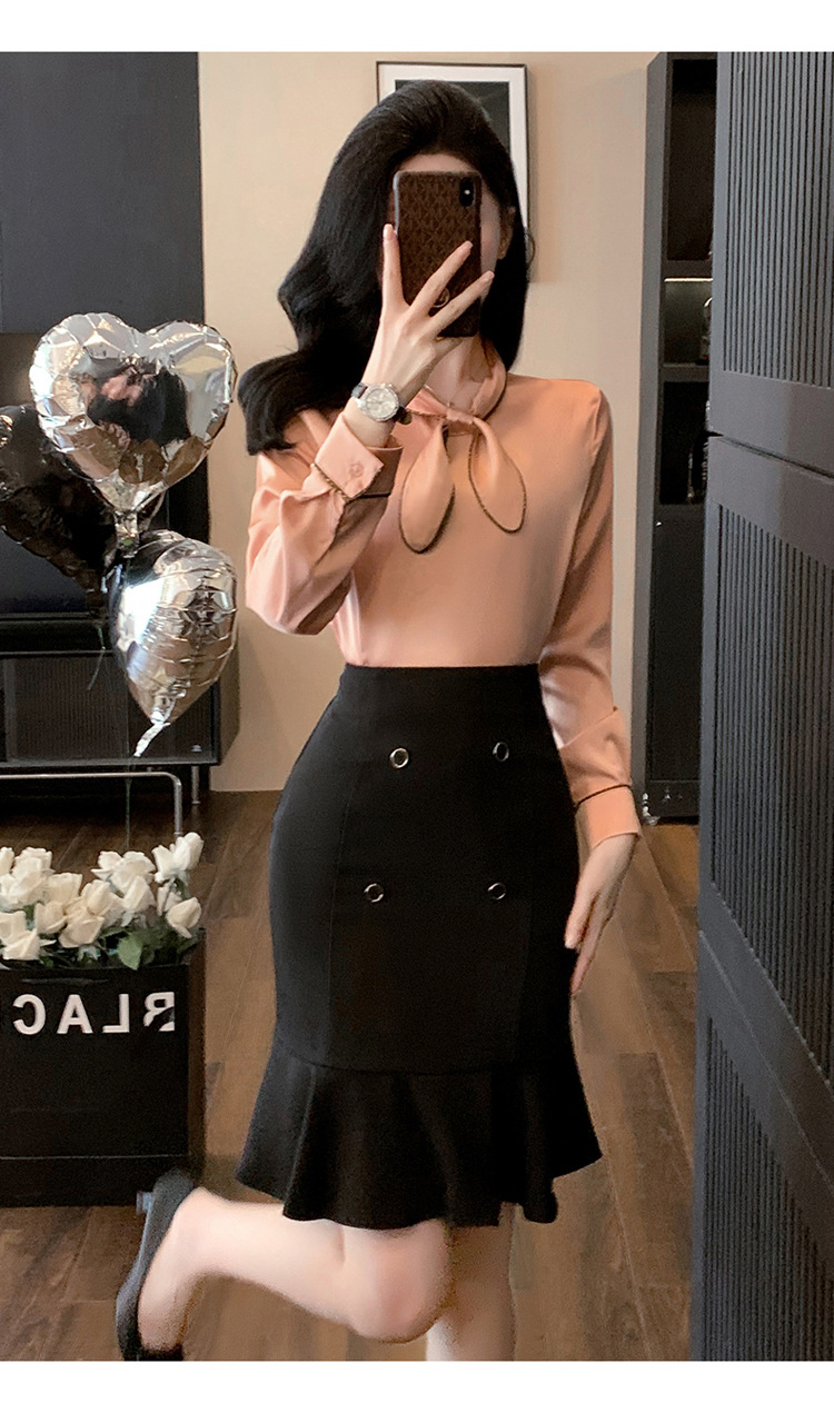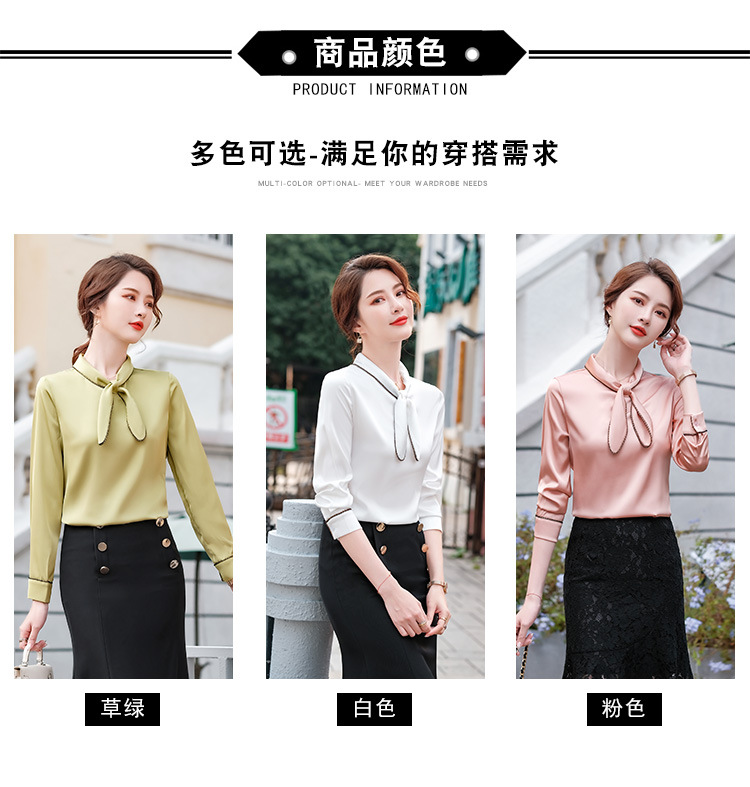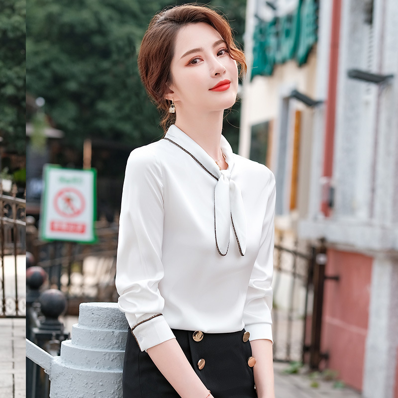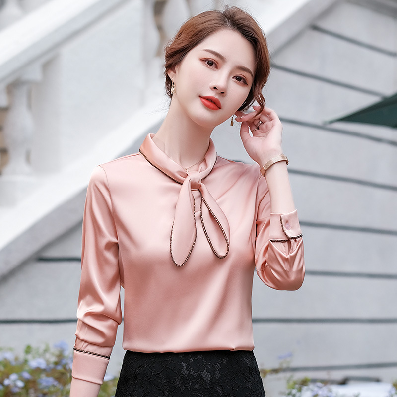 세븐 밸리 니앙 실크 셔츠 여성의 가을과 겨울 패션 서양식 디자인 센스 틈새 핑크 사틴 쉬폰 탑