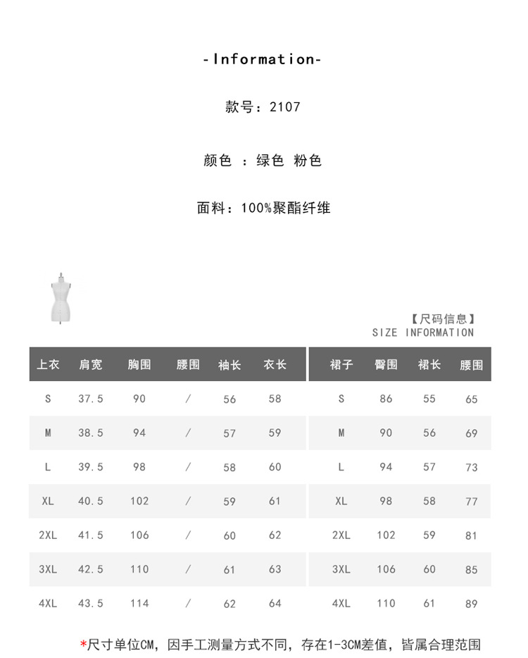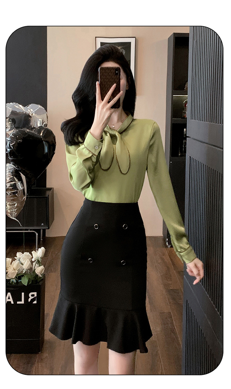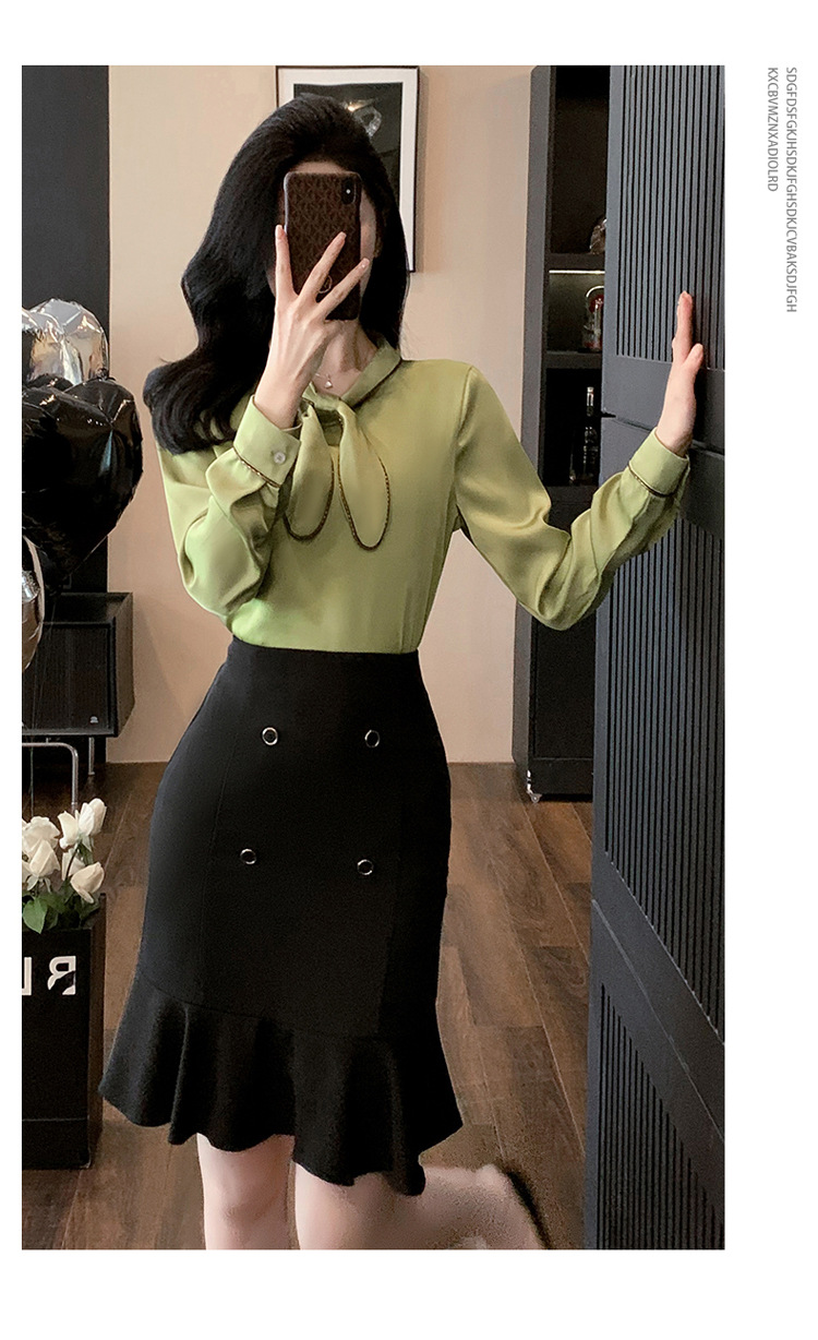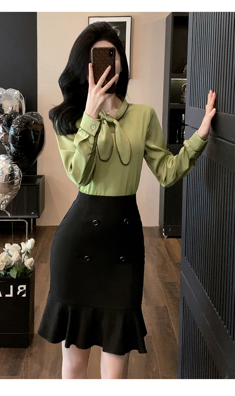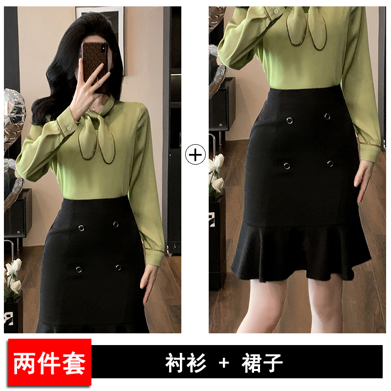 • 2피스 잔디 녹색 셔츠 + 검정색 C08 스커트