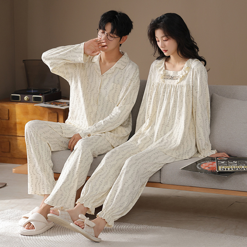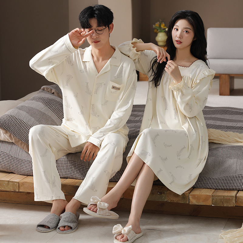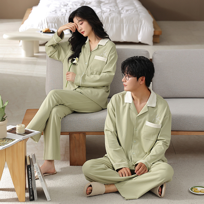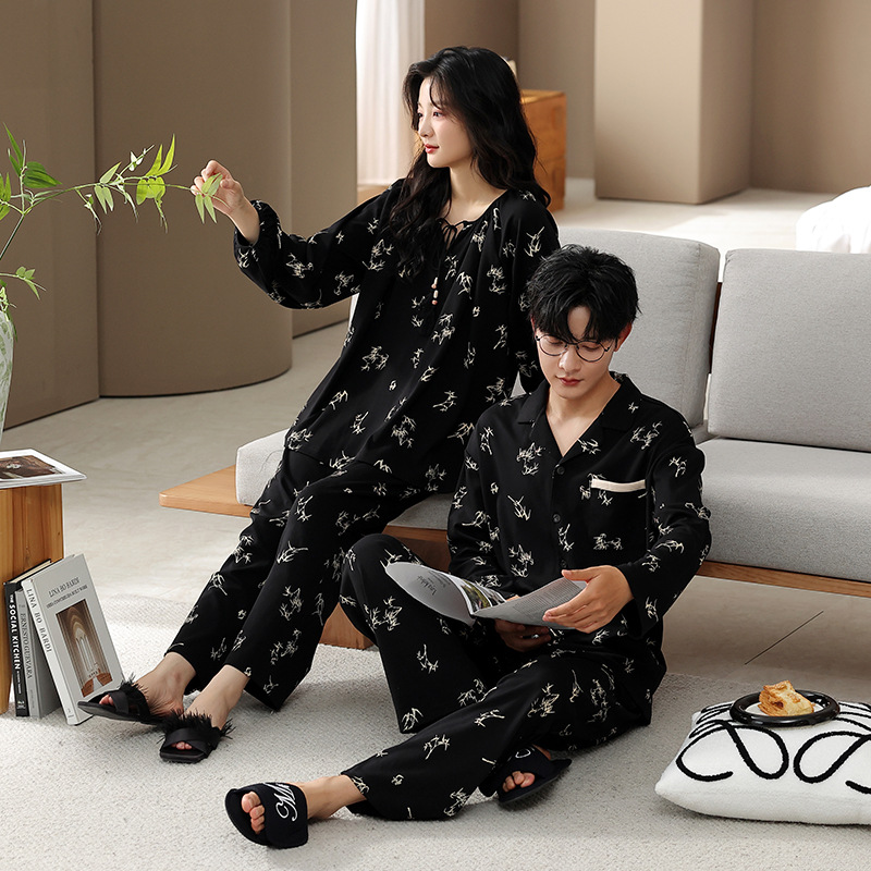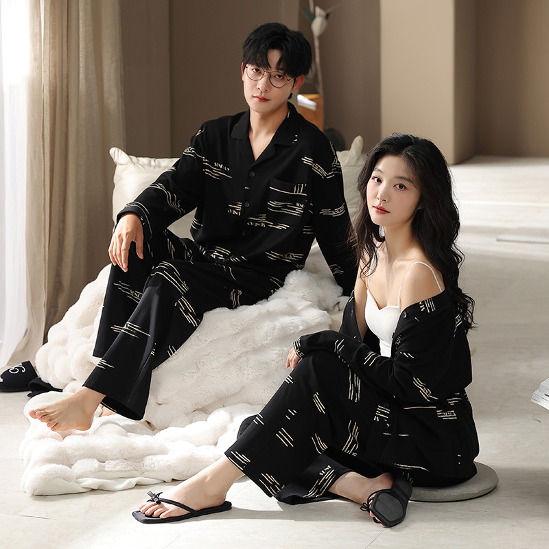 커플 잠옷 여성의 봄과 가을 면화 2025 새로운 긴 소매 가을과 겨울 캐주얼 남성 옷깃 홈 의류 세트스토어 가기