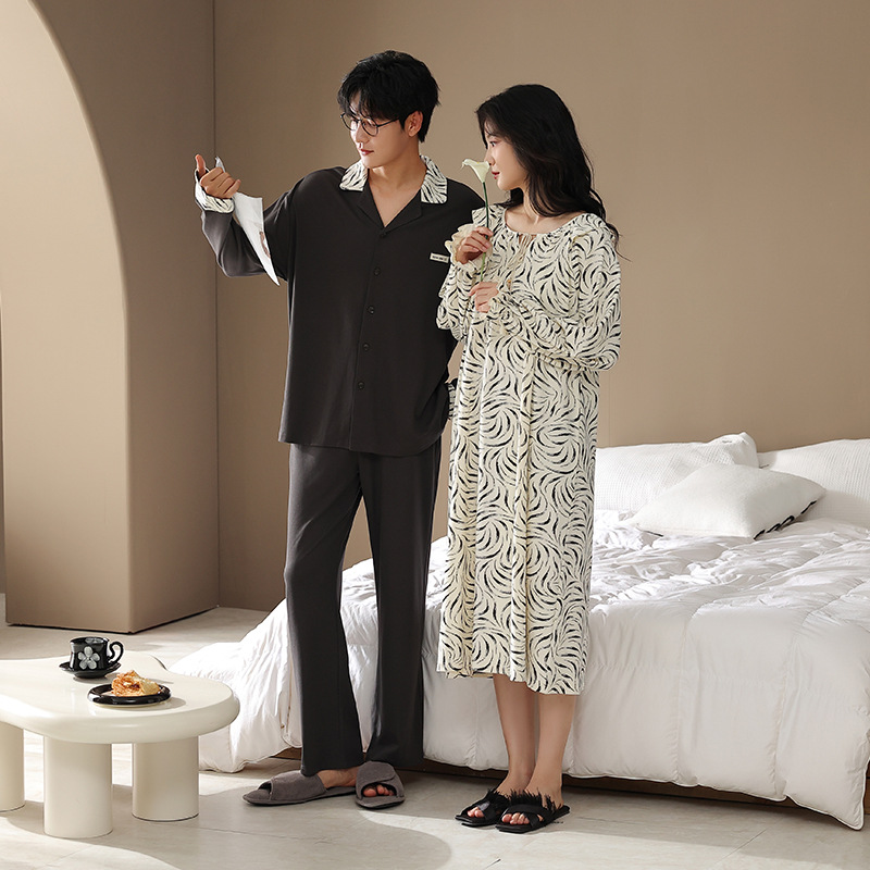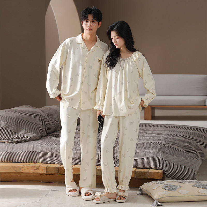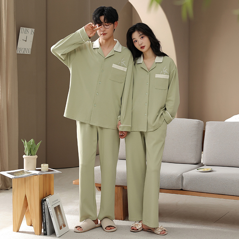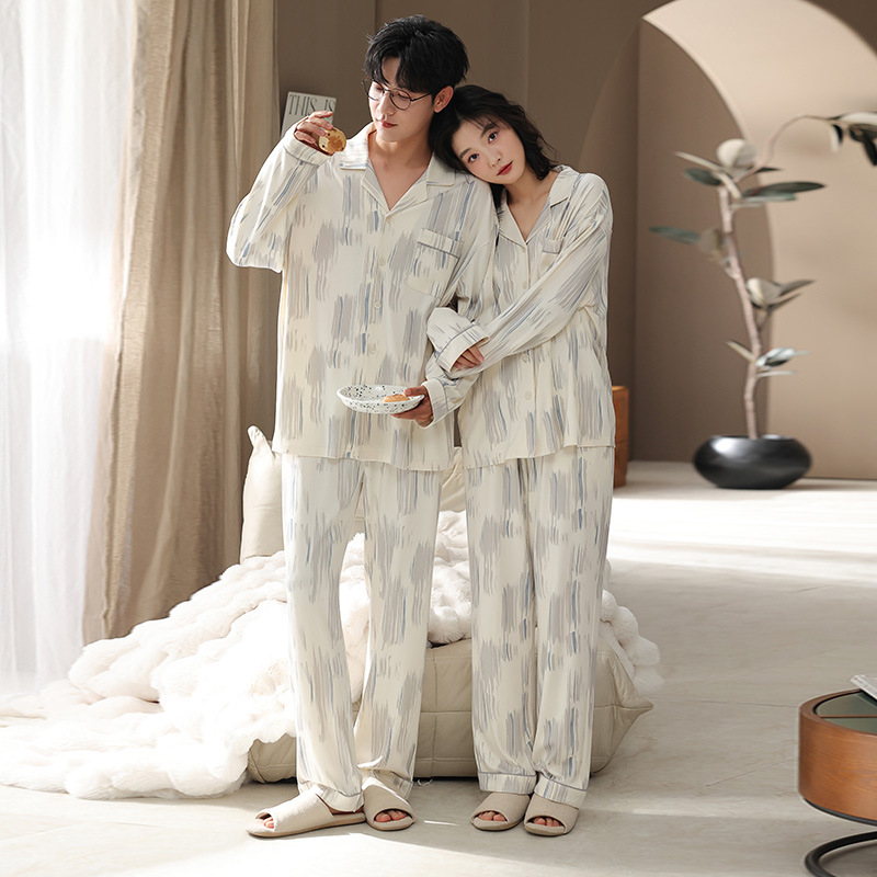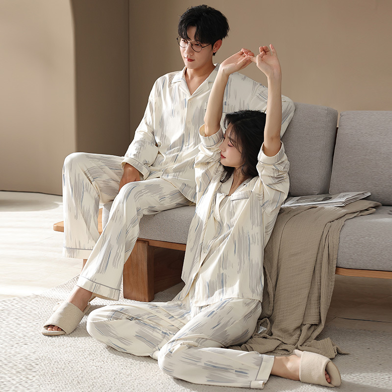 커플 잠옷 여성의 봄과 가을 면화 2025 새로운 긴 소매 가을과 겨울 캐주얼 남성 옷깃 홈 의류 세트스토어 가기