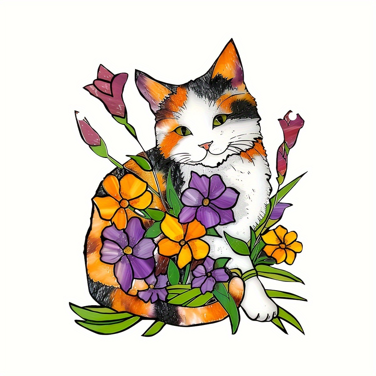 국경 간 매력적인 노란 고양이와 꽃 태양 트랩 아크릴 초승달 펜던트 펜던트 창 장식 태그스토어 가기