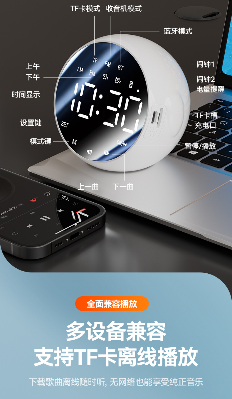 다기능 스마트 알람 시계 블루투스 오디오 학생 학습 홈 기숙사 대용량 타이밍 알람 작은 오디오스토어 가기
