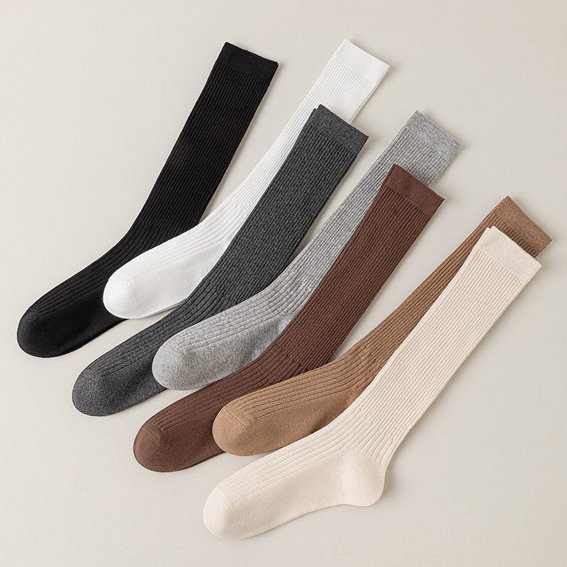 가을과 겨울 발 양말 두 배 바늘 수직 줄무늬 긴 배럴 약간의 압력 슬리밍 스타킹 Ins 트렌디 한 단색 간단한 일본 스타킹스토어 가기