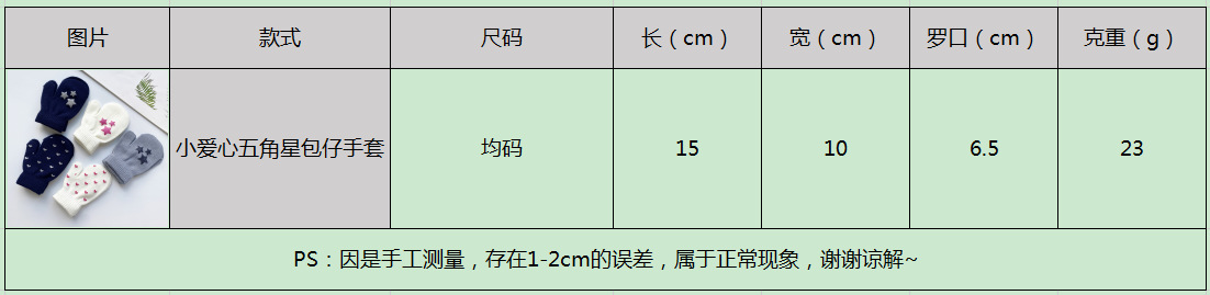 1-4 세 겨울 따뜻한 유치원 아기 가방 손가락 장갑 오프셋 인쇄 귀여운 가방 사랑 다섯개 별 장갑