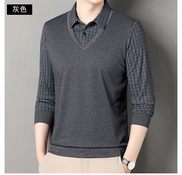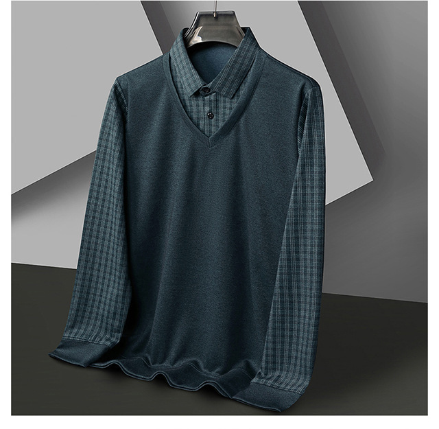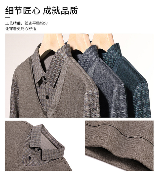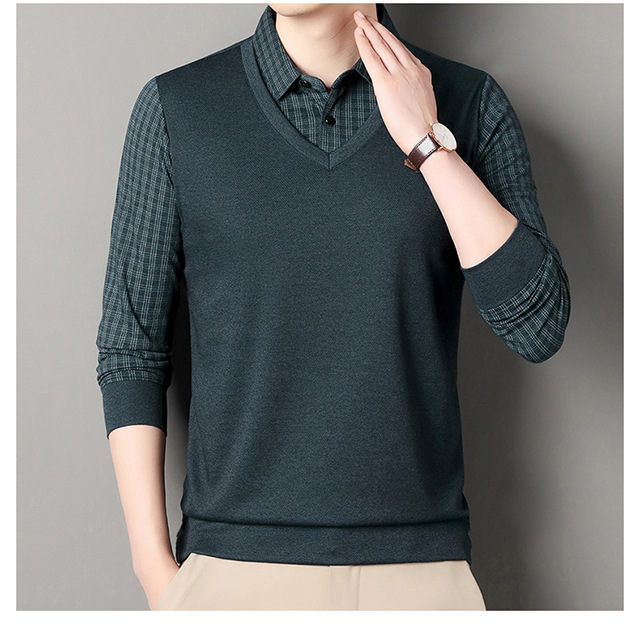 가짜 투피스 셔츠 칼라 폴로 셔츠 남성 봄과 가을 신사업 캐주얼 플레이드 자카드 긴팔 티셔츠 남성복