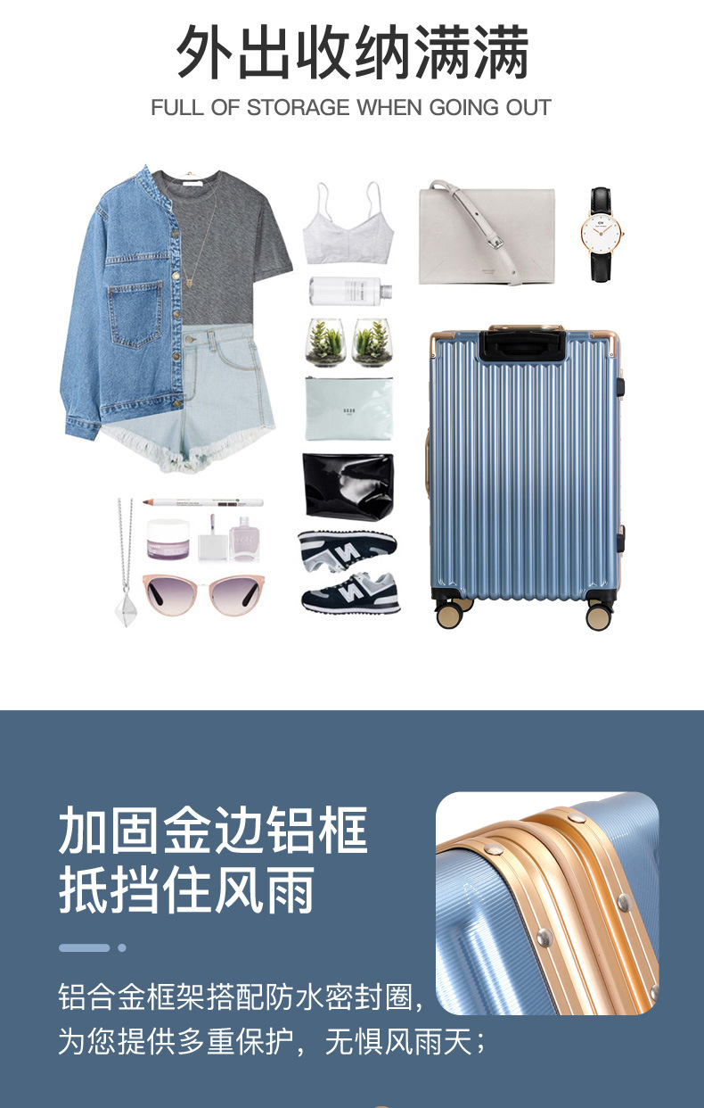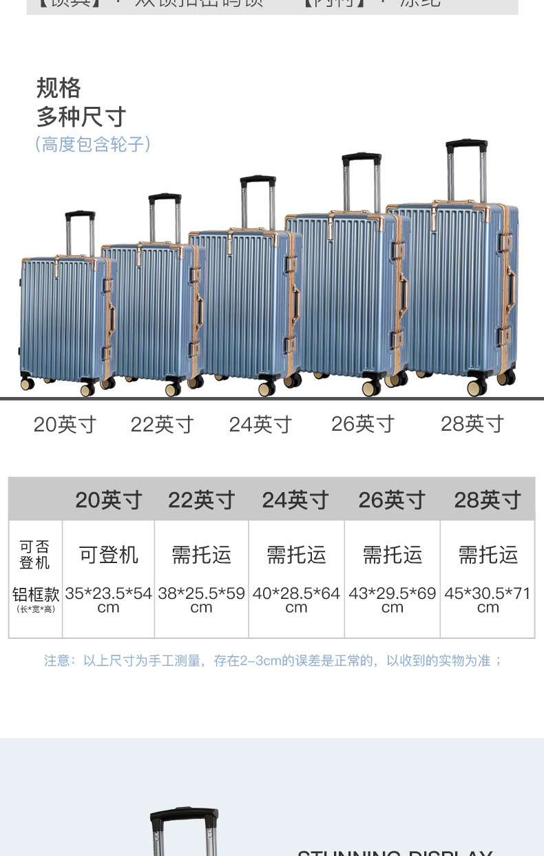 수하물 케이스 여성의 새로운 20 인치 보닝 케이스 남성 암호 트롤리 케이스 알루미늄 프레임 26 대용량 강력하고 내구성이 뛰어난 가방