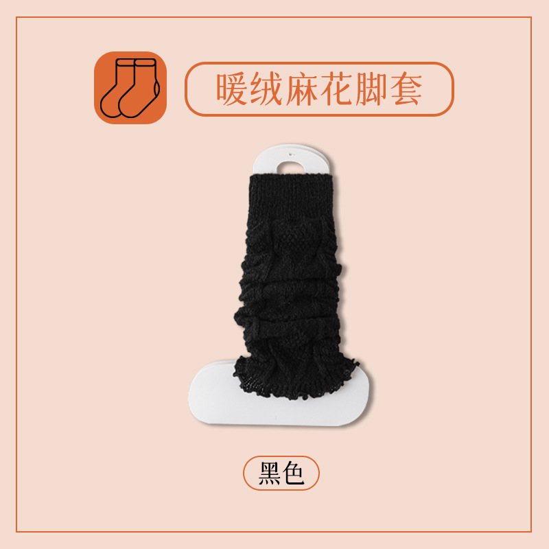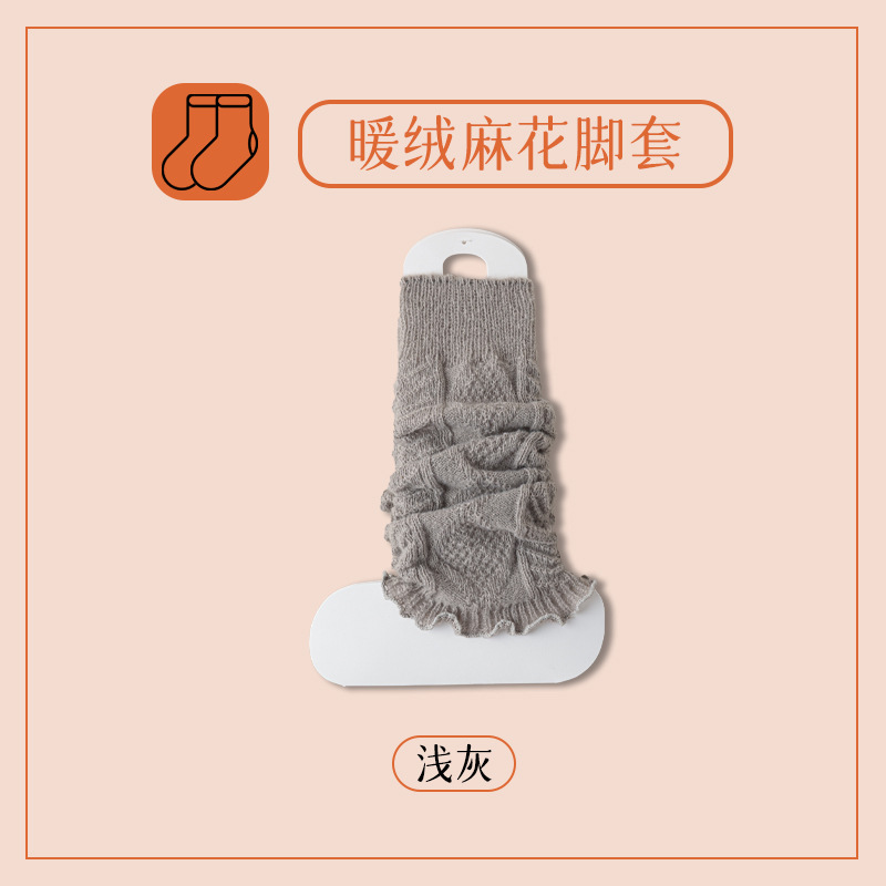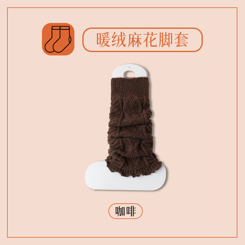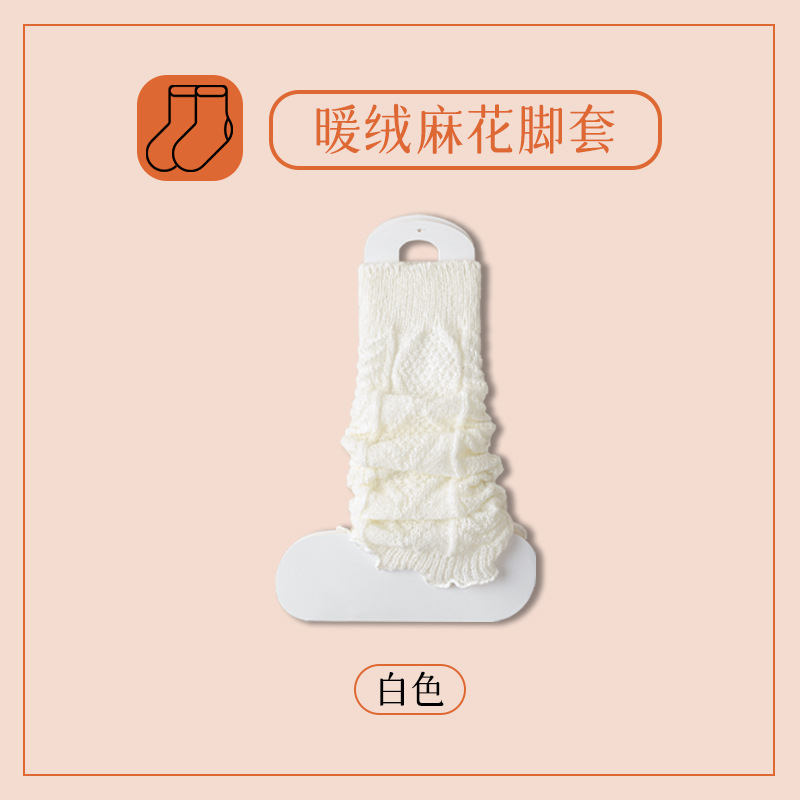 时尚暖绒麻花脚套女春秋款雪地靴秋冬堆堆袜腿套白色中长筒踩脚袜
