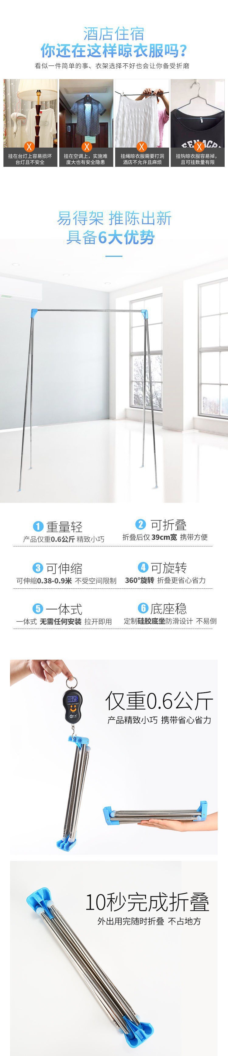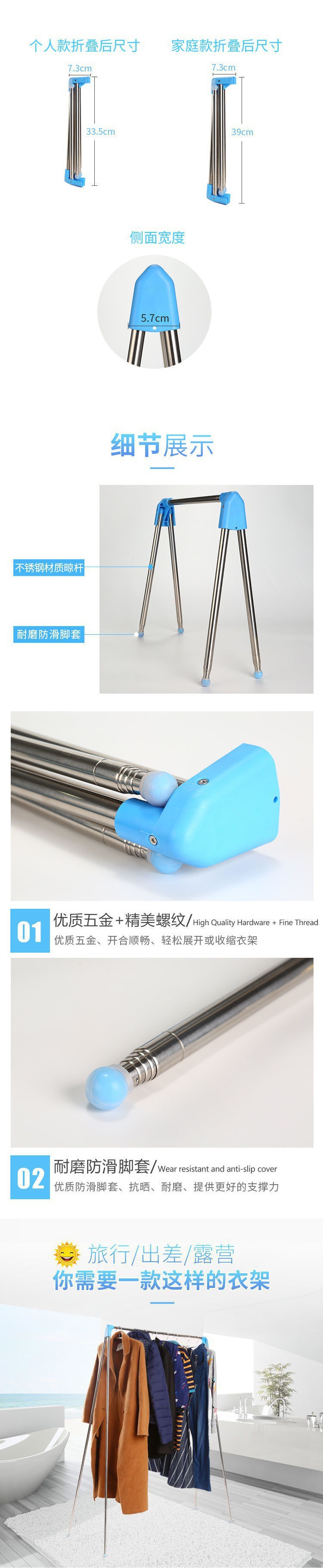 휴대용 건조 랙 홈 대담한 여행 의류 바 새로운 스테인레스 스틸 망원경 접이식 옷걸이스토어 가기