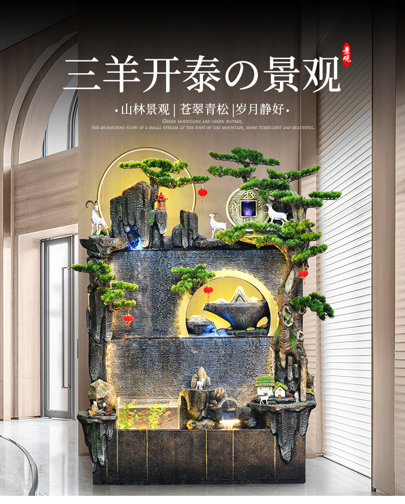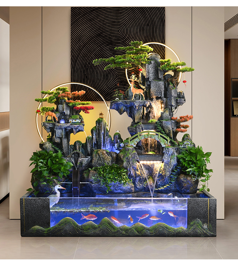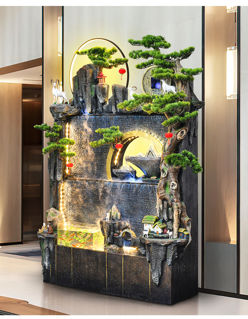 바위 흐르는 물 분수 돈 장식품 만드는 물 커튼 벽 착륙 거실 사무실 집 풍경 풍수 바퀴에 물을 순환스토어 가기