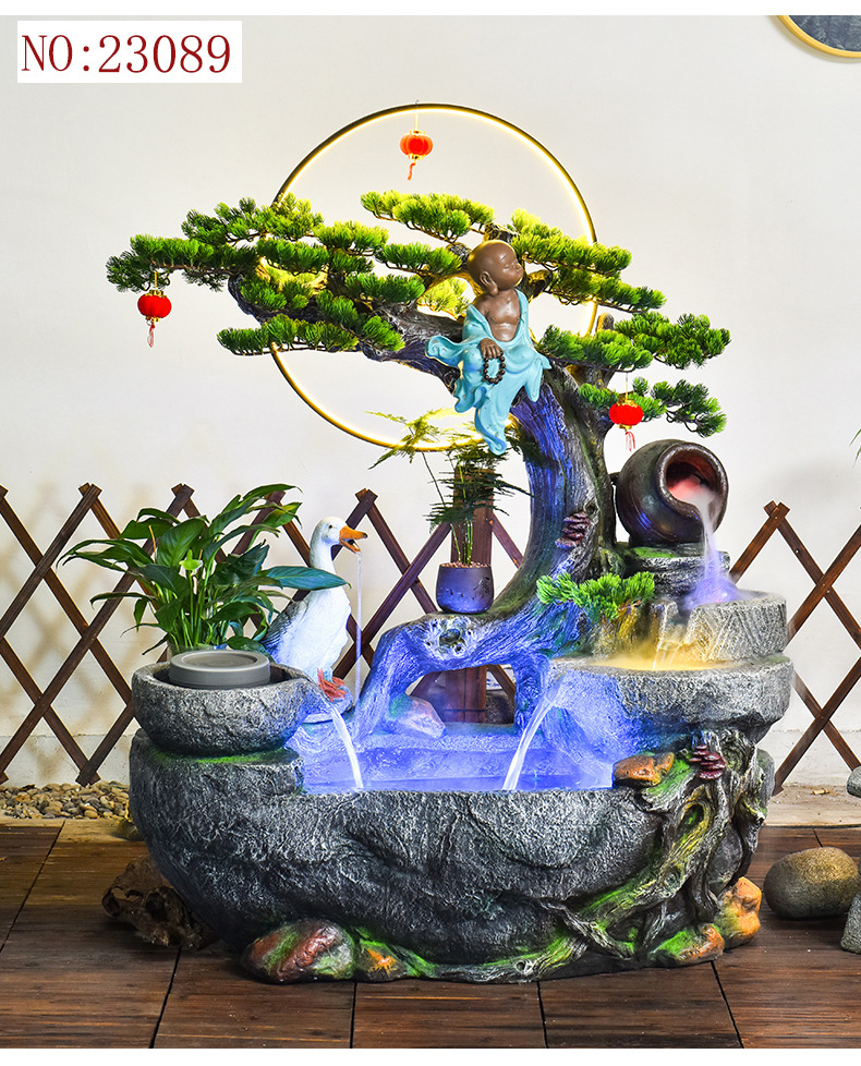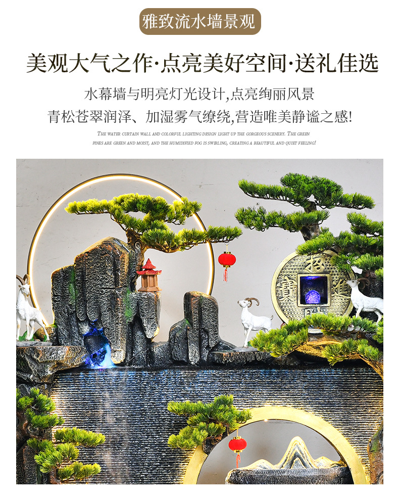 바위 흐르는 물 분수 돈 장식품 만드는 물 커튼 벽 착륙 거실 사무실 집 풍경 풍수 바퀴에 물을 순환