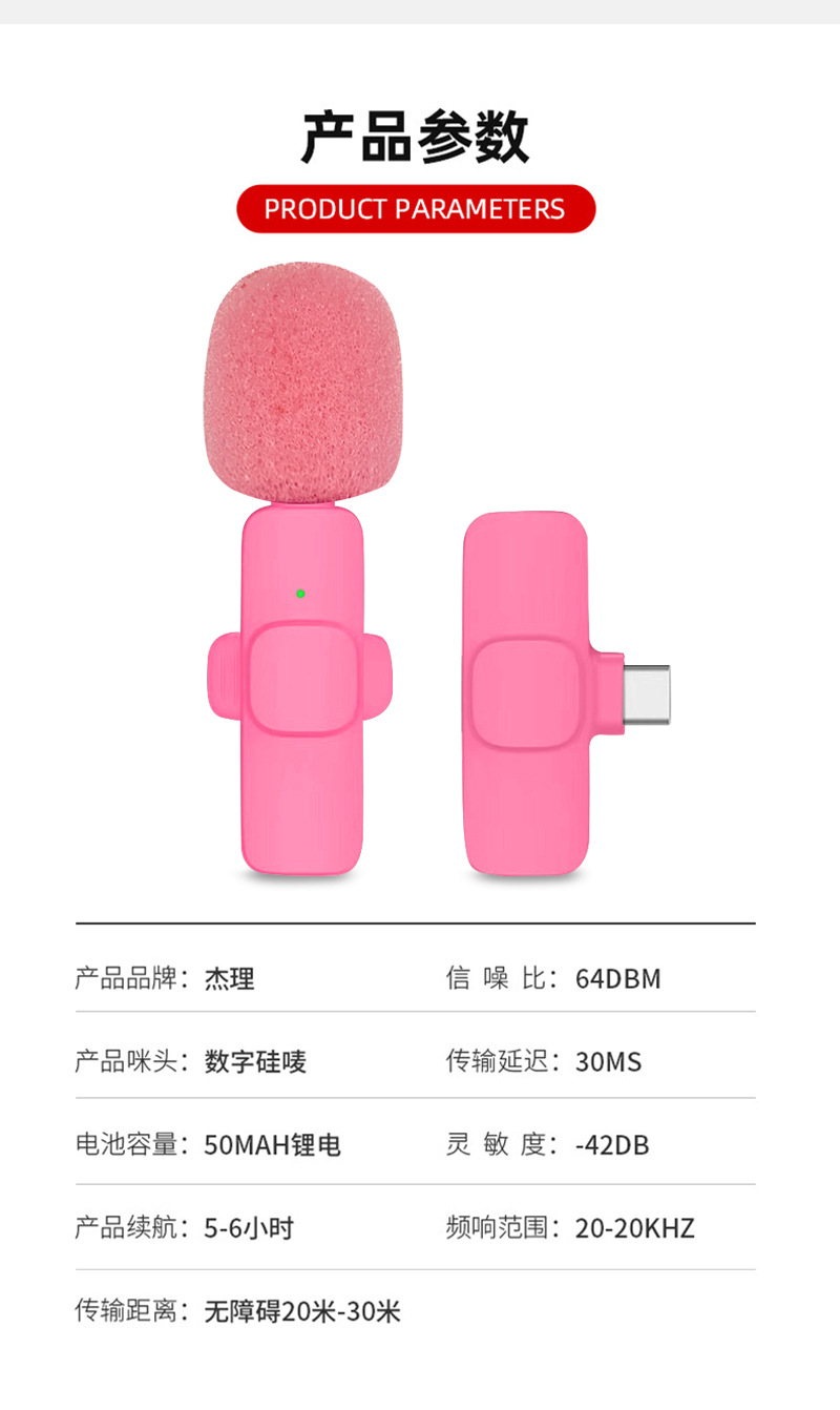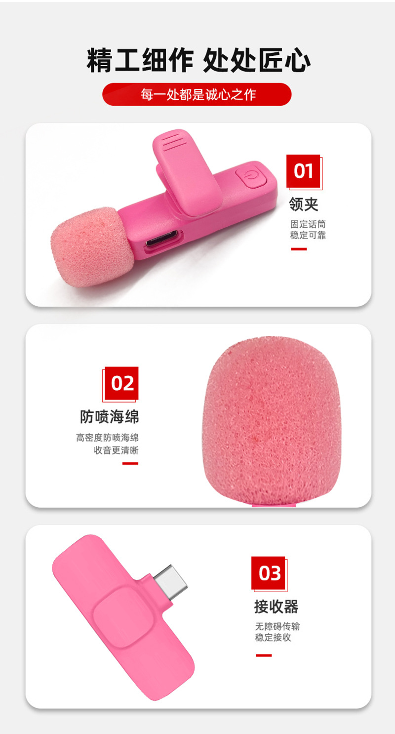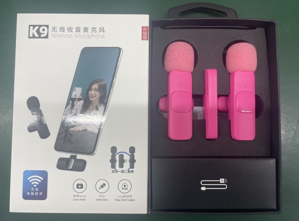 무선 라발리에 마이크 K9 로즈 레드 야외 라이브 방송 휴대폰 촬영 녹음 소음 감소 무선 휴대용 라발리에 마이크