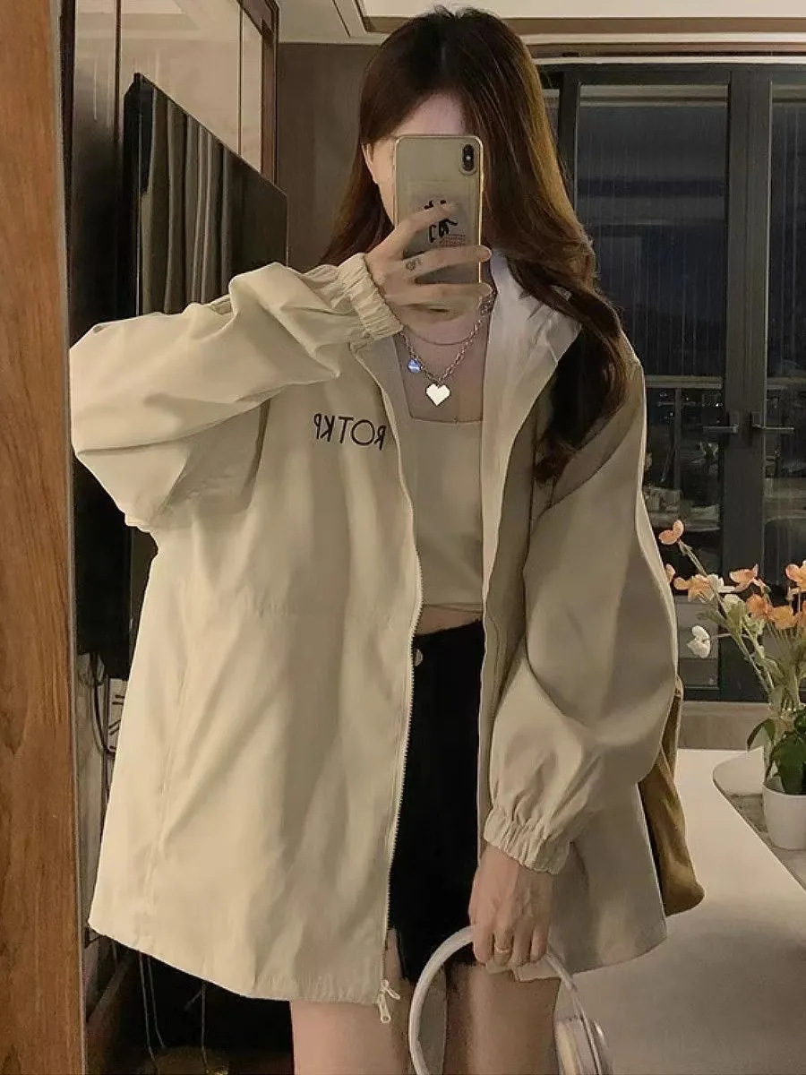 미국 레트로 야외 재킷 여성의 봄과 가을 2024 새로운 느슨한 후드 캐주얼 커플의 재킷 트렌디스토어 가기