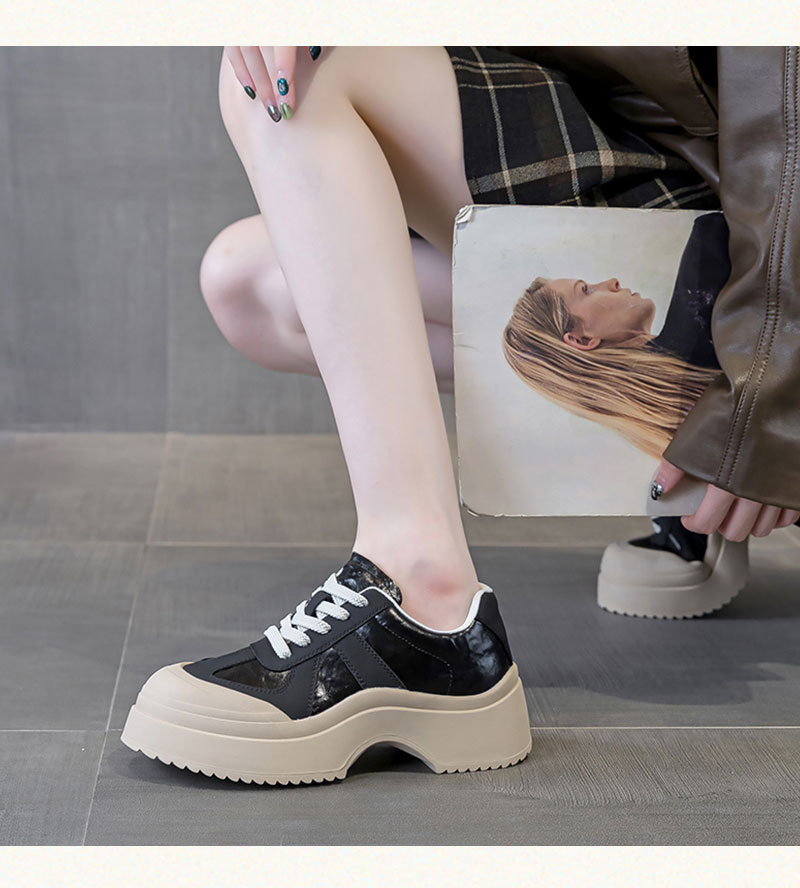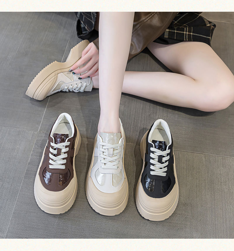 여성을위한 두꺼운 밑창 인터넷 연예인 흰색 신발 2025 새로운 한국어 버전 높이 증가 스포츠 및 레저 운동화 게으른 아빠 여성 신발 유행스토어 가기