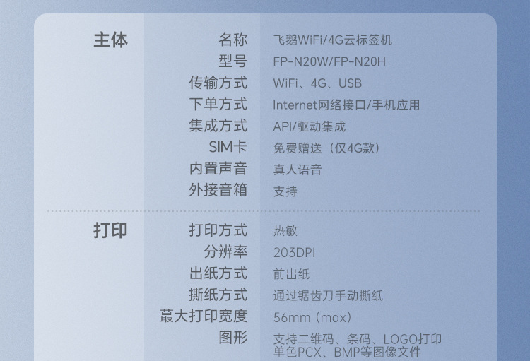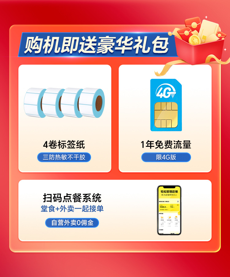 • 4G 버전 [풀 Netcom 4G+USB]에는 무료 라벨 용지 + 데이터 카드가 함께 제공됩니다.