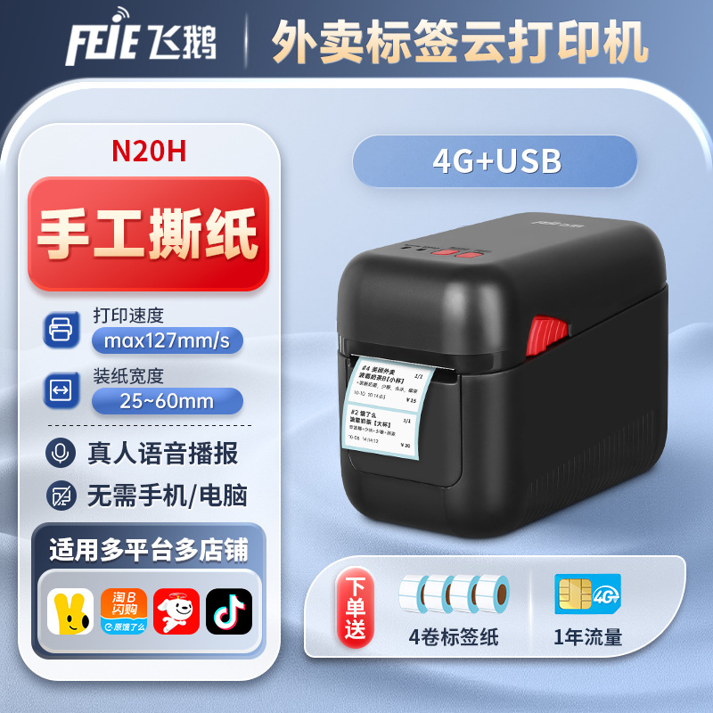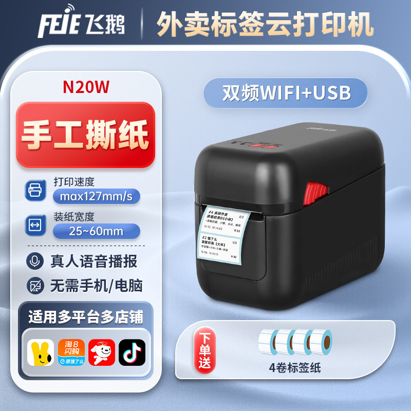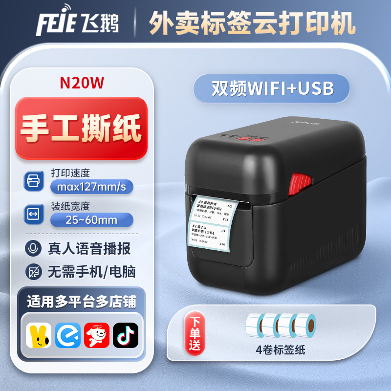 Feie N20 Jingdong 테이크아웃 클라우드 라벨 프린터 Meituan Ele.me 무선 WiFi 완전 자동 주문 수신기스토어 가기