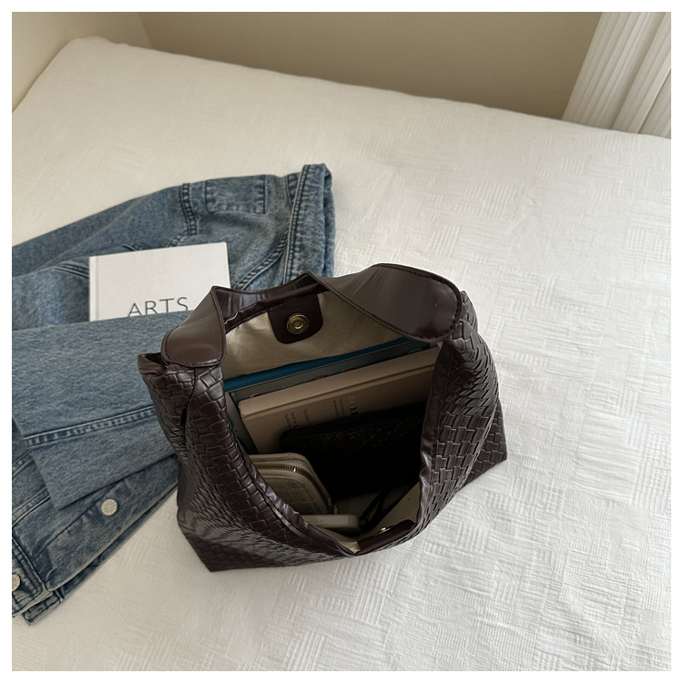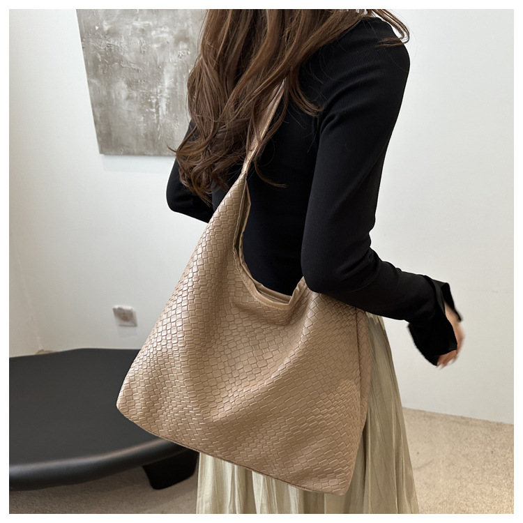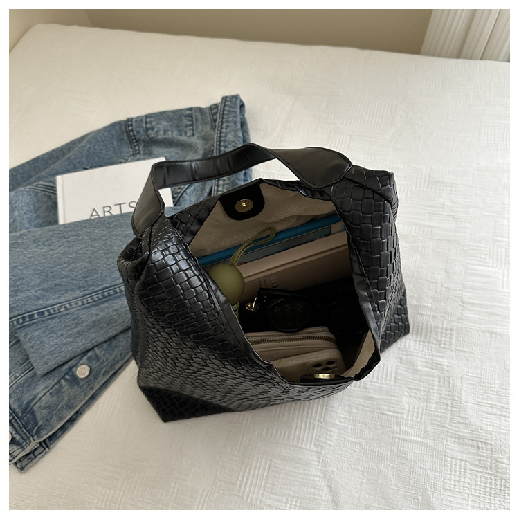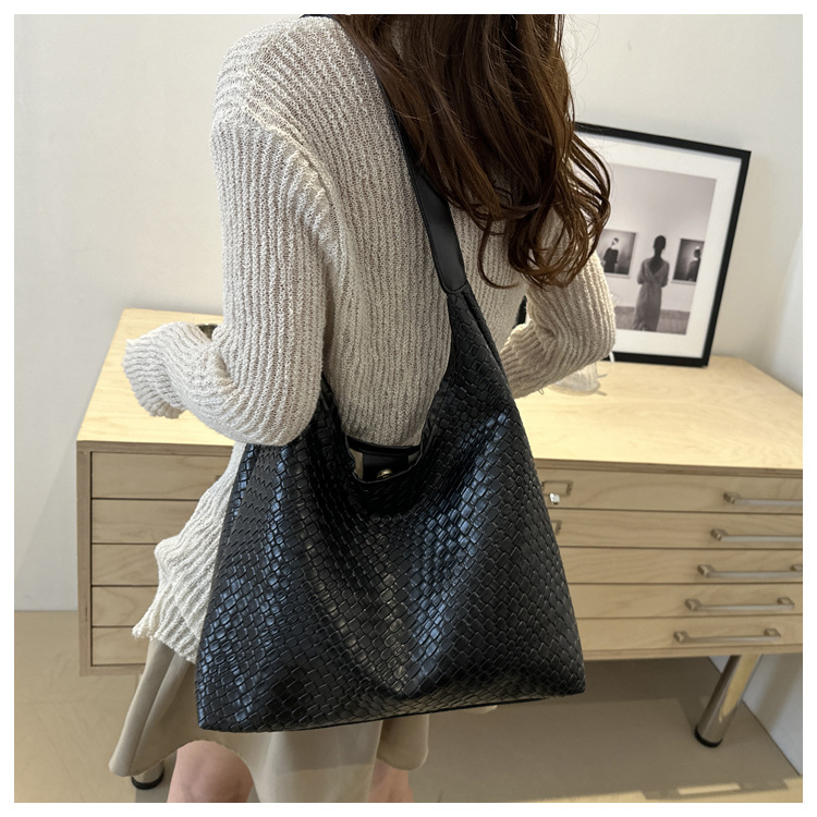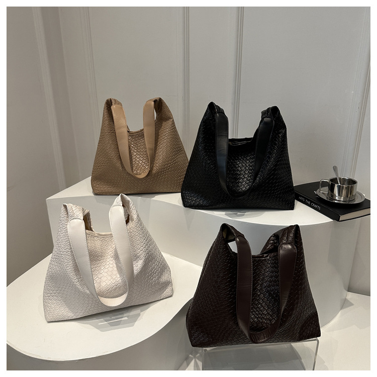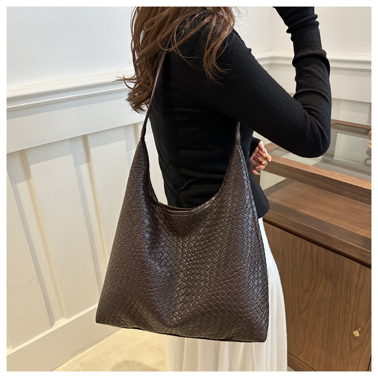 2024 새로운 대외 무역 여성 가방 하이 엔드 레트로 어깨 가방 짠 패턴 대용량 일반 가방 토트 버킷 가방스토어 가기