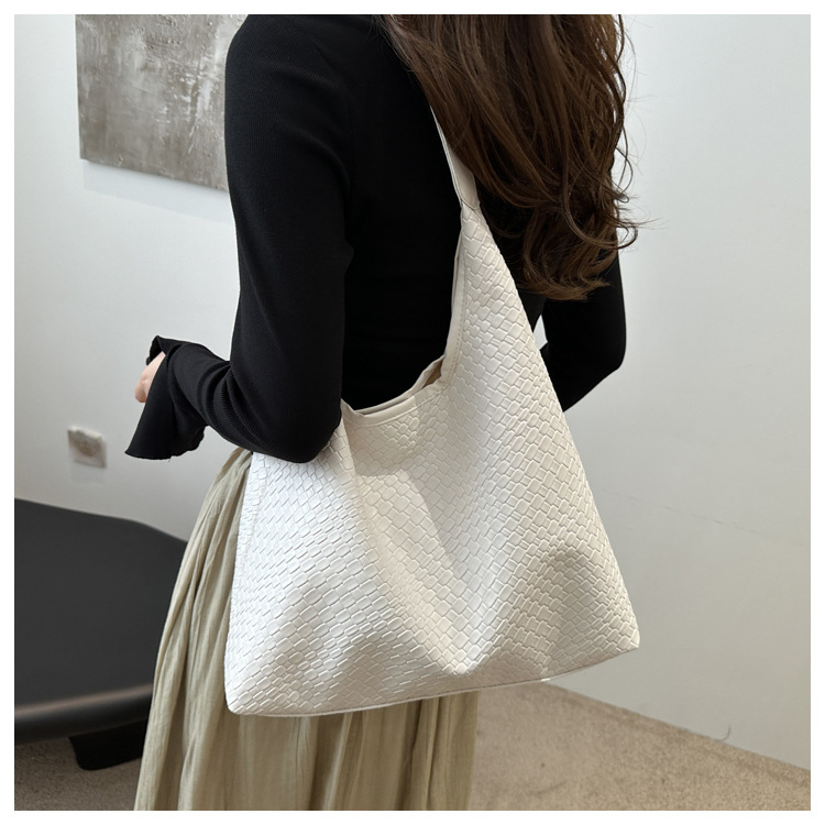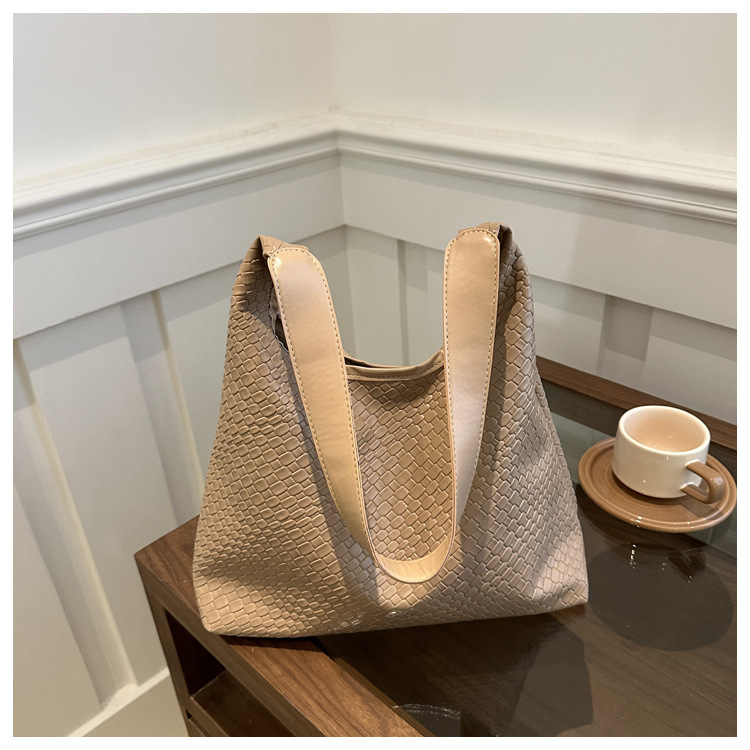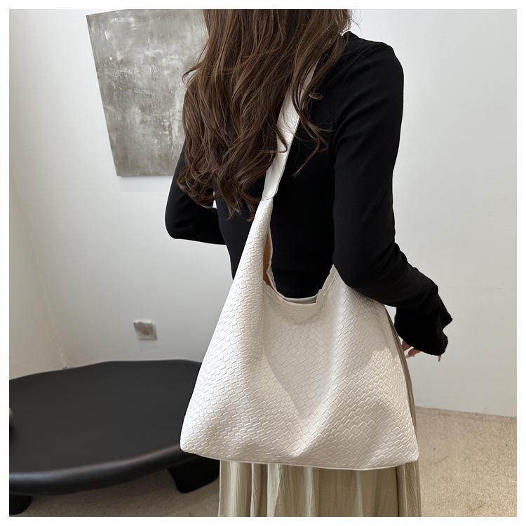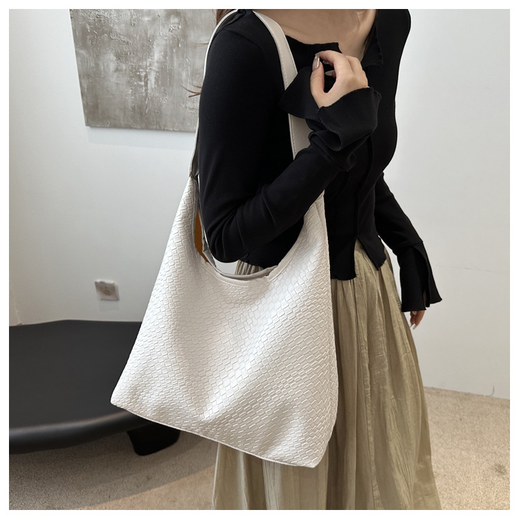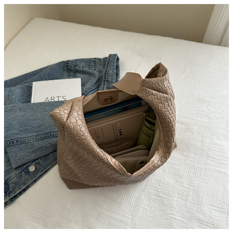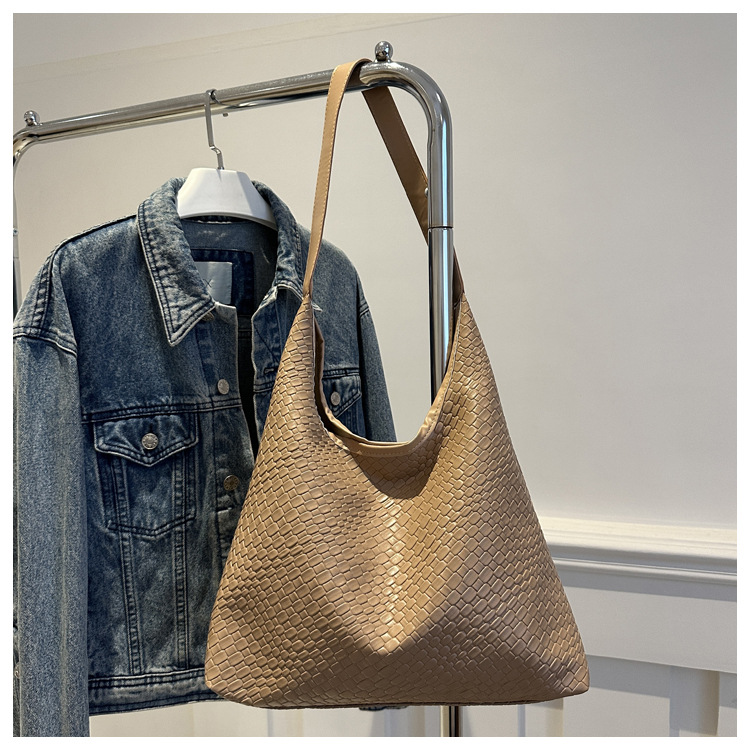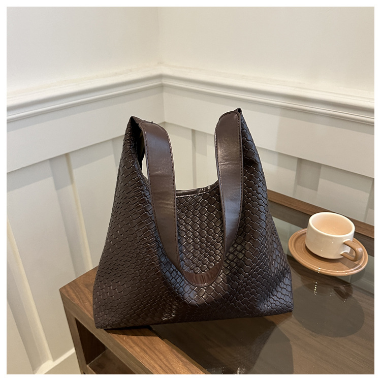 2024 새로운 대외 무역 여성 가방 하이 엔드 레트로 어깨 가방 짠 패턴 대용량 일반 가방 토트 버킷 가방스토어 가기