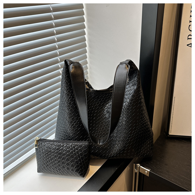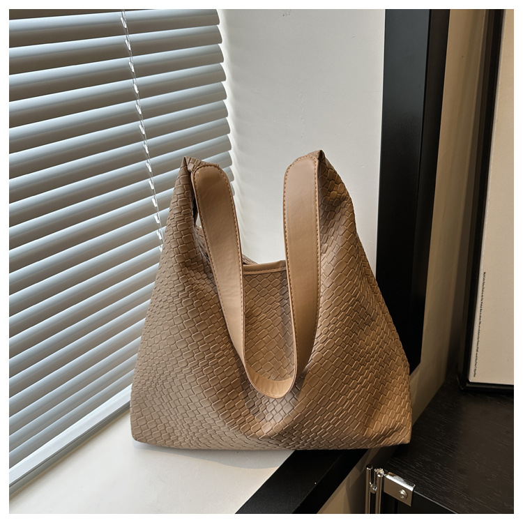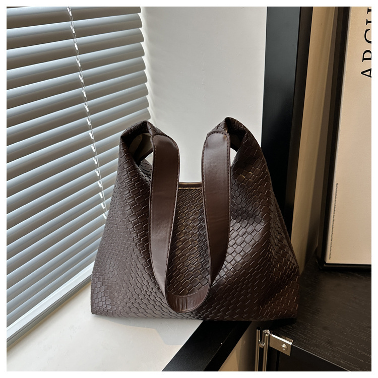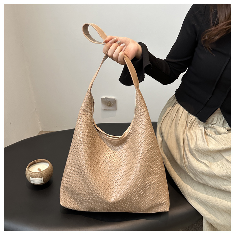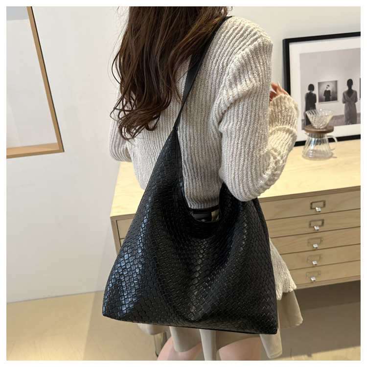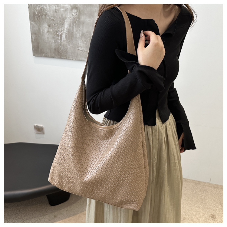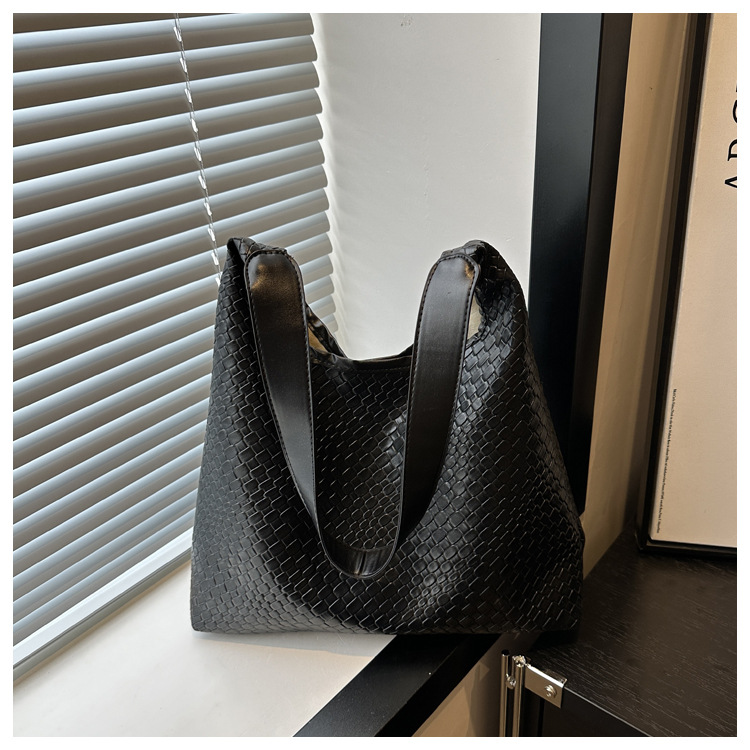 2024 새로운 대외 무역 여성 가방 하이 엔드 레트로 어깨 가방 짠 패턴 대용량 일반 가방 토트 버킷 가방