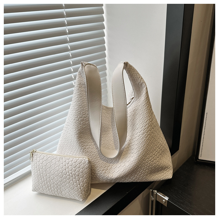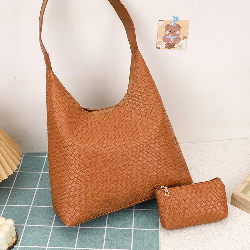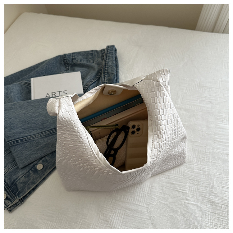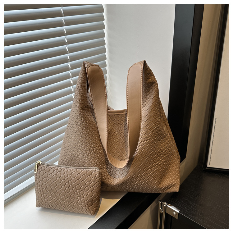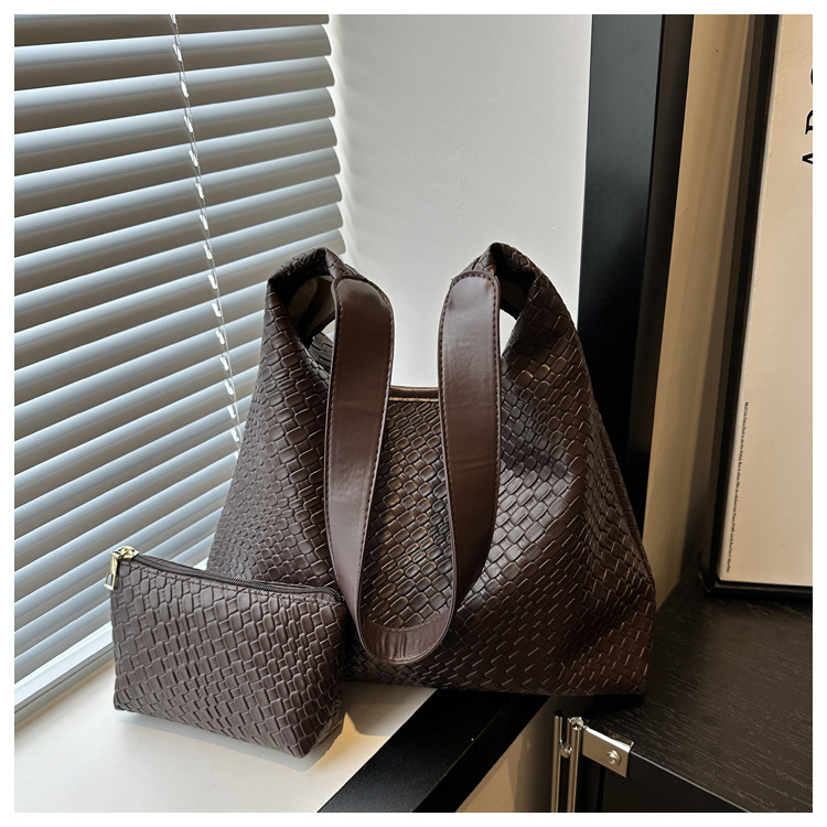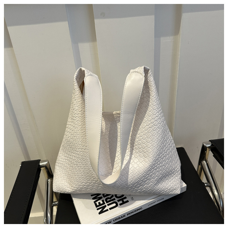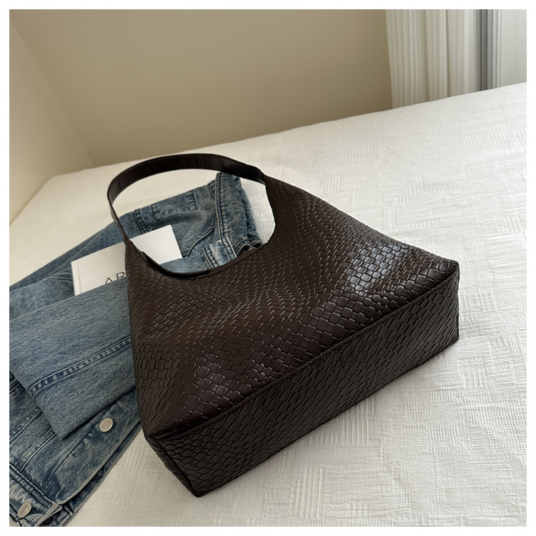 2024 새로운 대외 무역 여성 가방 하이 엔드 레트로 어깨 가방 짠 패턴 대용량 일반 가방 토트 버킷 가방