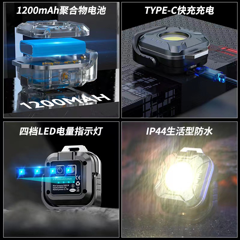 국경 강한 빛 미니 키 체인 램프 led 다기능 조명 손전등 COB 대형 홍수 빛 야외 자기 작업 빛