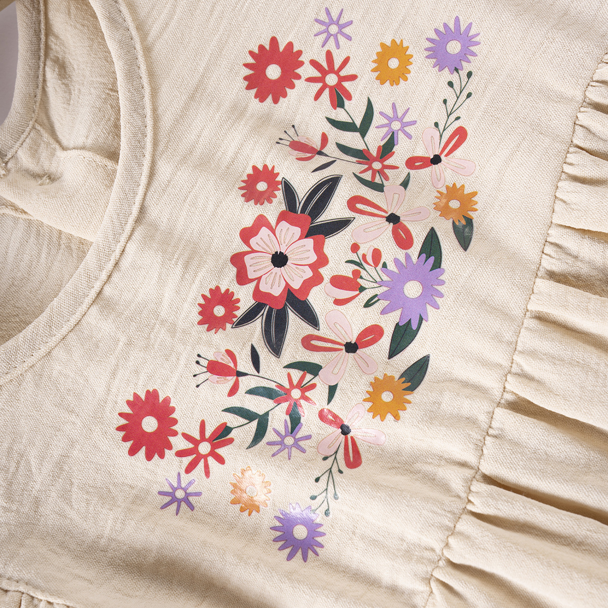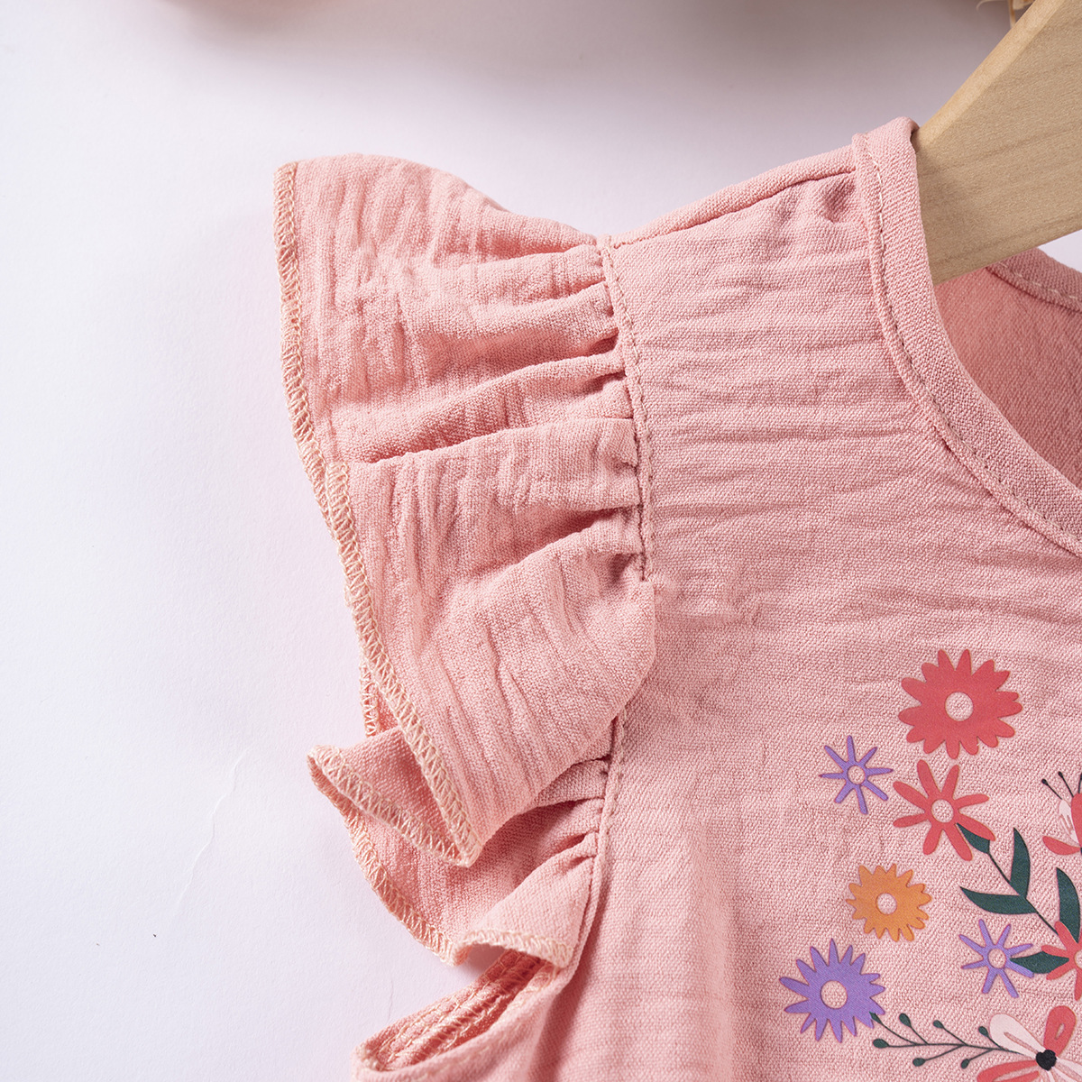 해외 뜨거운 판매 여름 소녀의 인쇄 원피스 아기 소녀의 비행 소매 캐주얼 달콤한 원피스 간단한 올 매치 트렌디스토어 가기