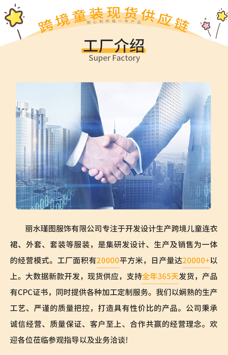 本厂设计、生产、按版订做、批发童装。所有款式接受定做和订单生产,需要的请联系我们!