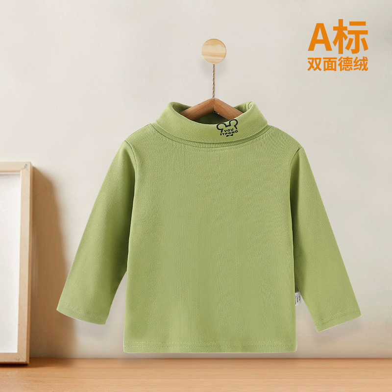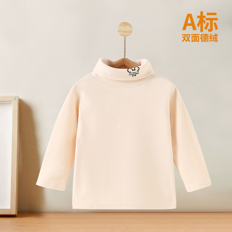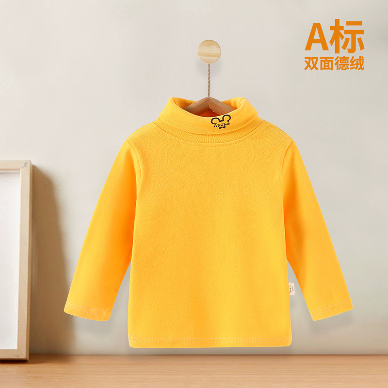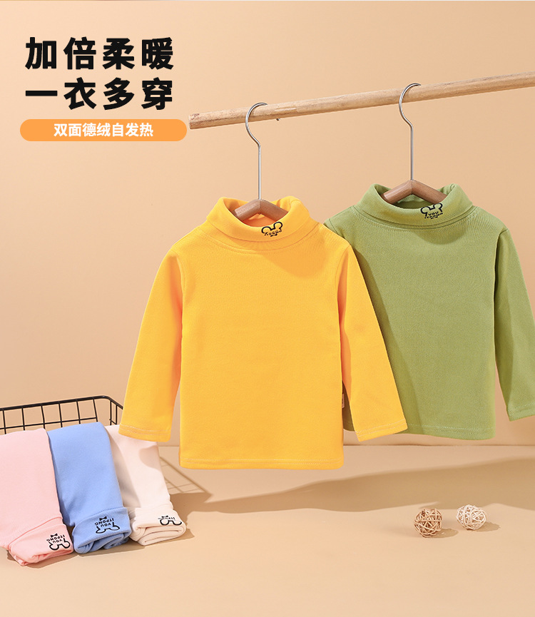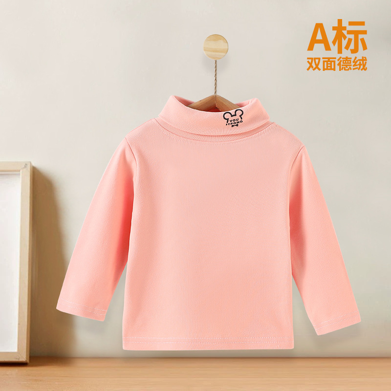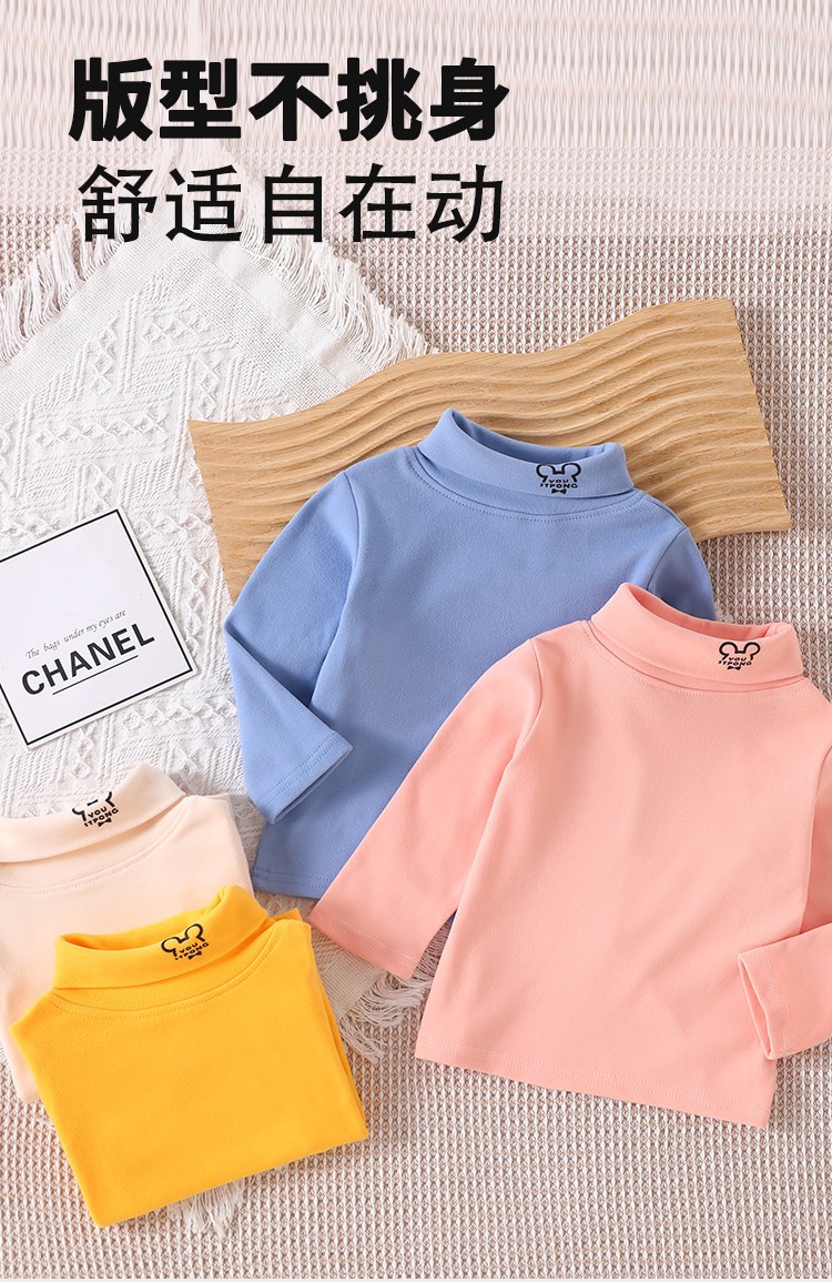 소년 소녀베이스 셔츠 어린이 하프 하이 칼라 봄과 가을 기모 내부 티셔츠 가을 따뜻한 탑 아기 가을 옷