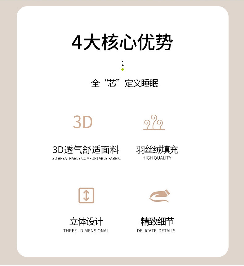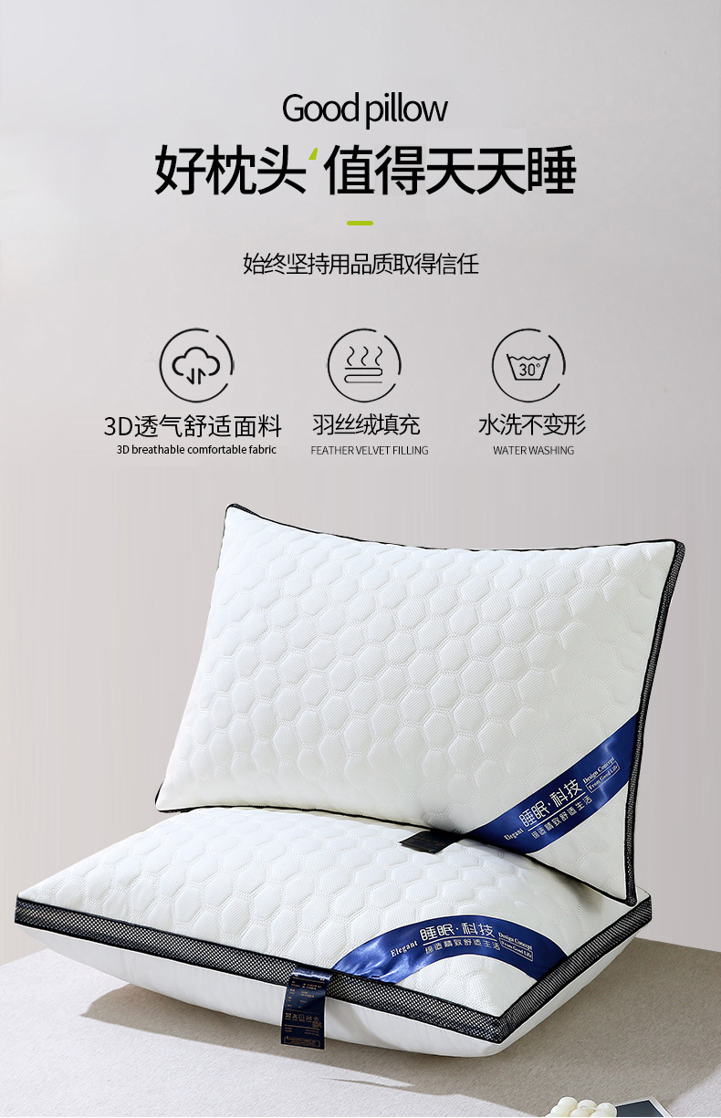 • 입체적인 퀼팅 자수 기술 수면 항균 베개 - 화이트 하이 베개