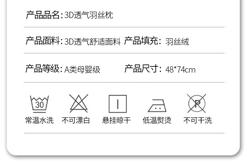 • 입체적인 퀼팅 자수 기술 수면 항균 베개 - 흰색 낮은 베개