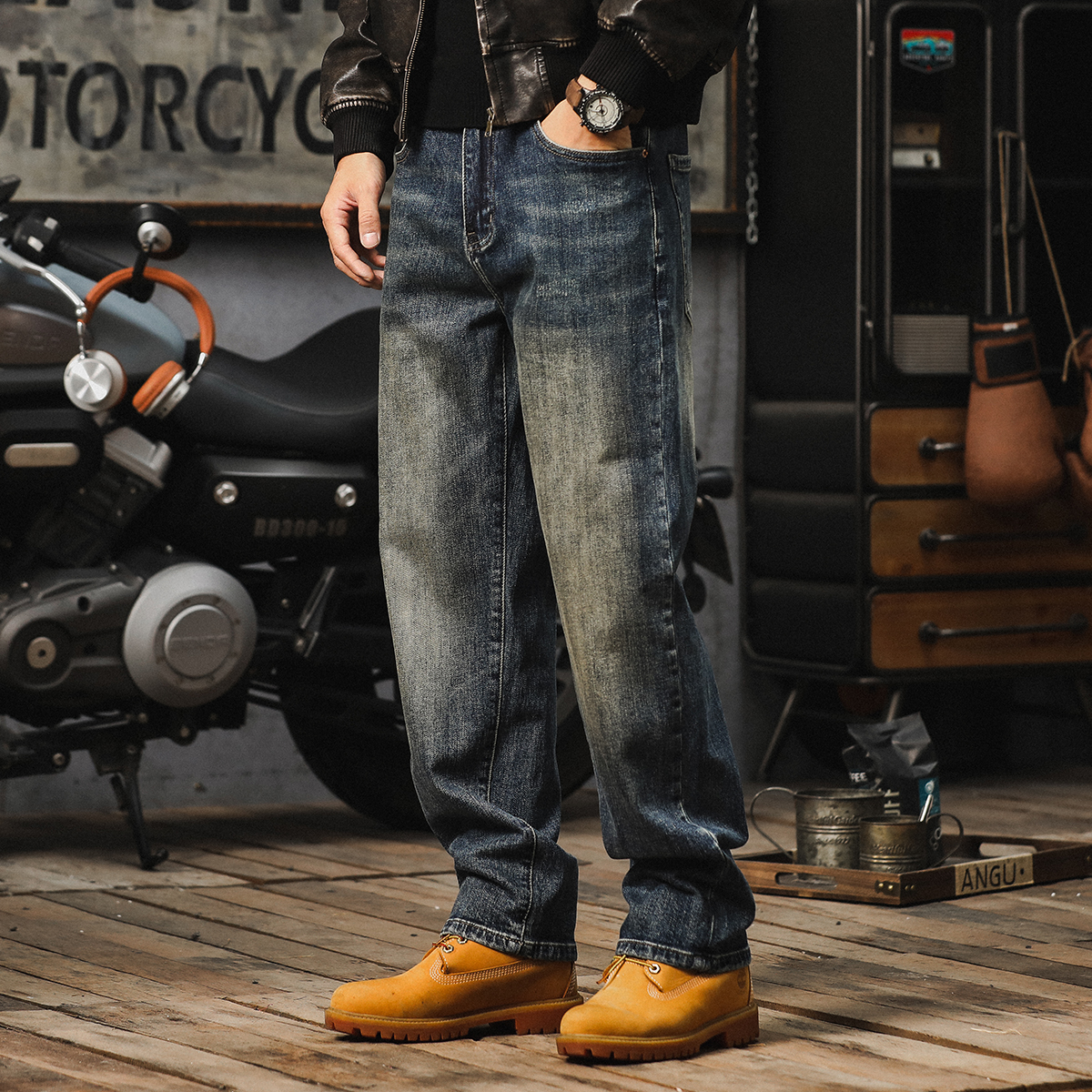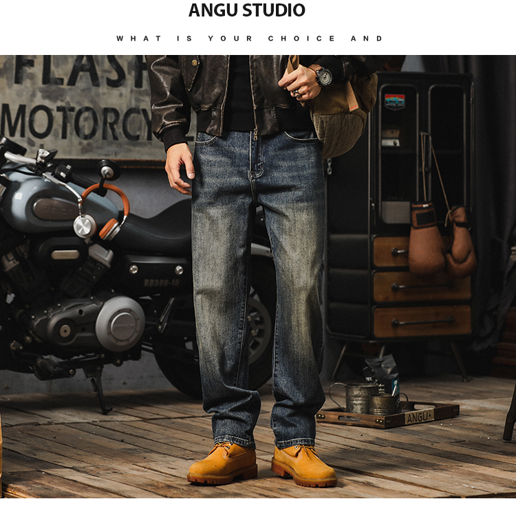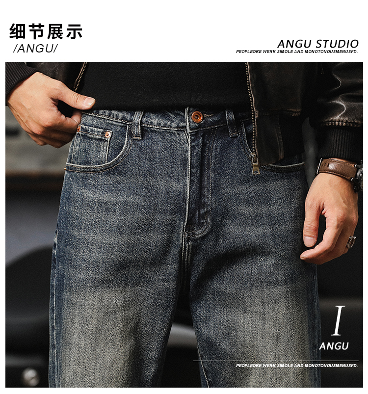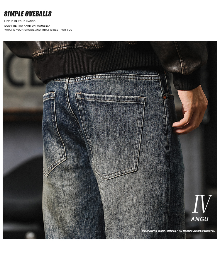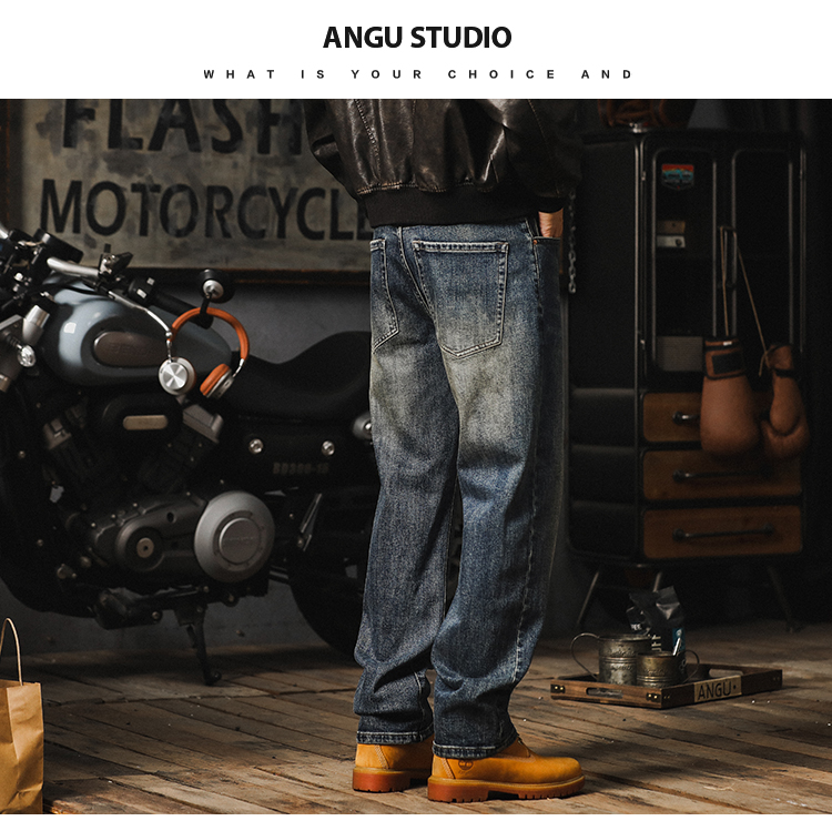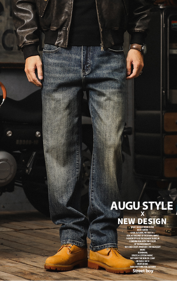 가을 새로운 청바지 남성용 루즈 트렌디 브랜드 아메리칸 스타일 클래식 레트로 캐주얼 바지 헤비 스트레이트 올 매치 바지스토어 가기