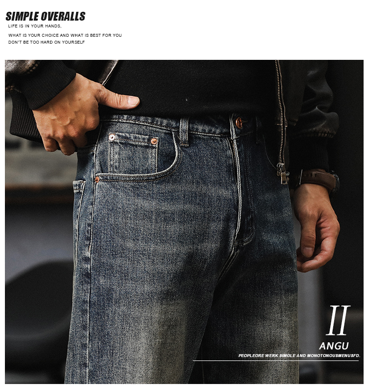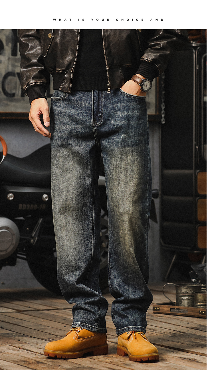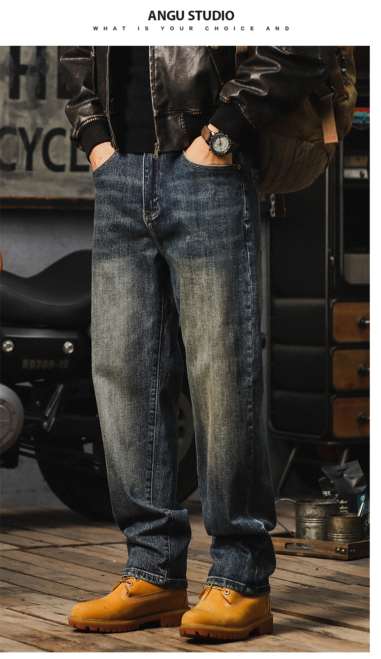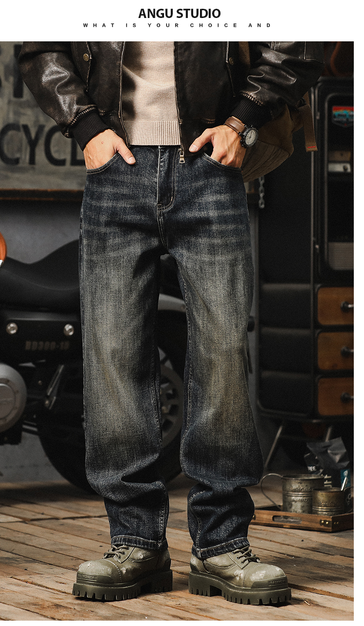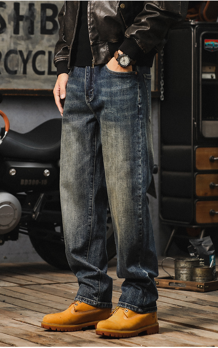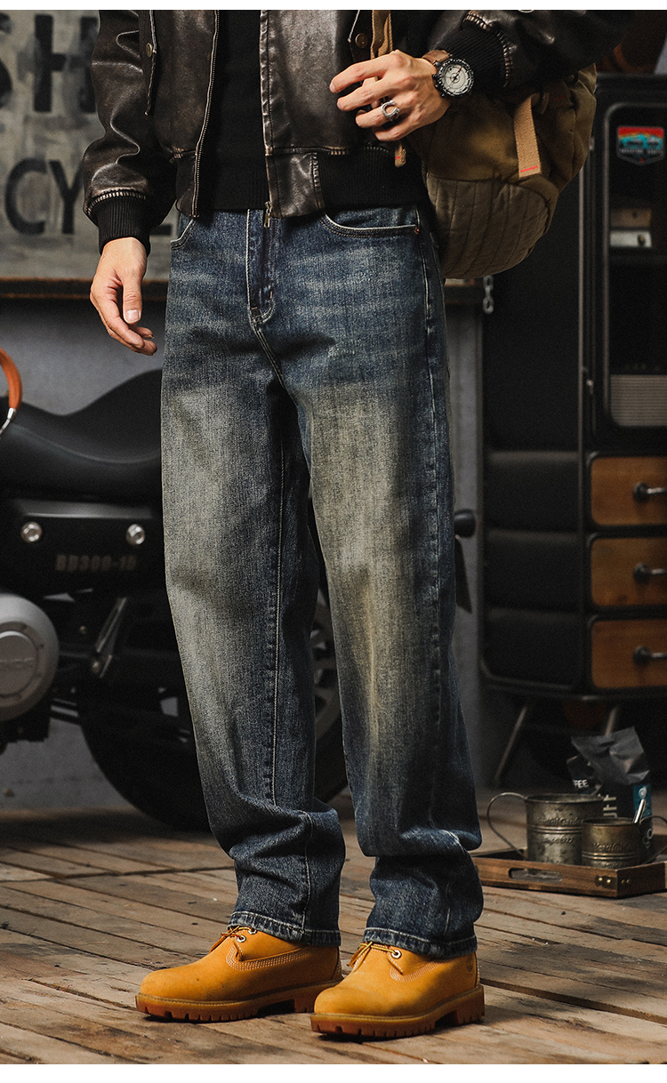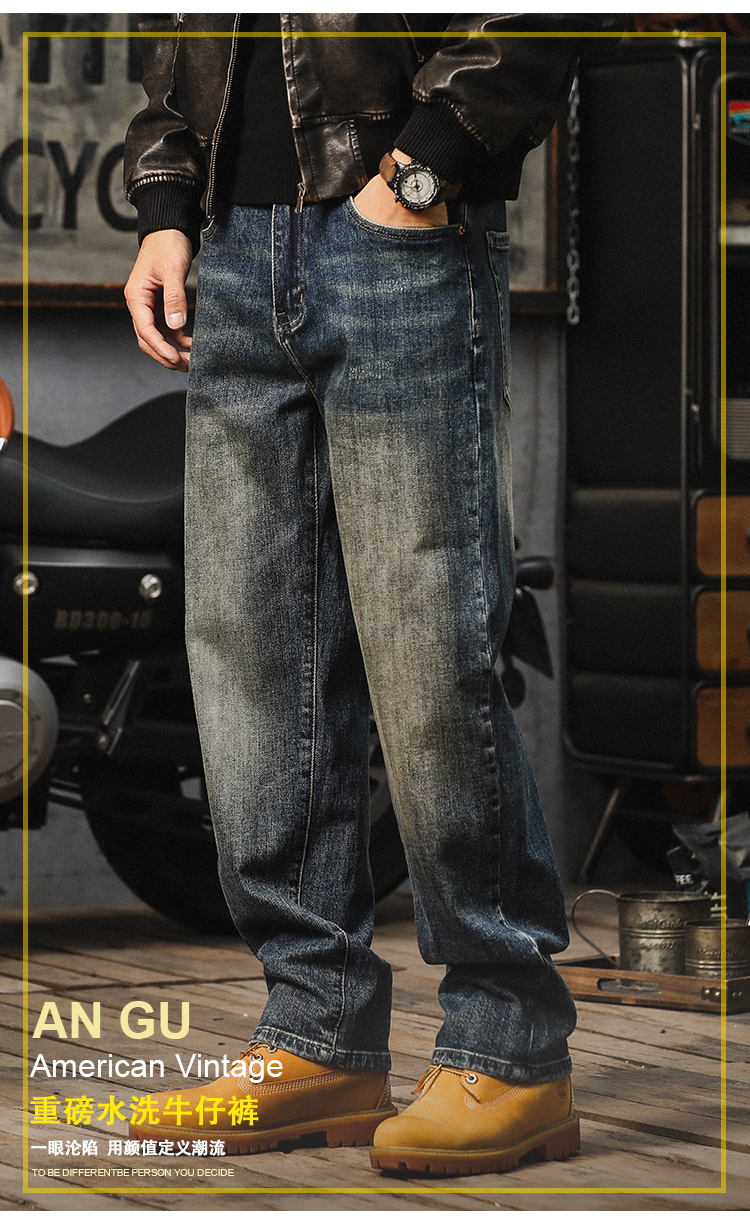가을 새로운 청바지 남성용 루즈 트렌디 브랜드 아메리칸 스타일 클래식 레트로 캐주얼 바지 헤비 스트레이트 올 매치 바지