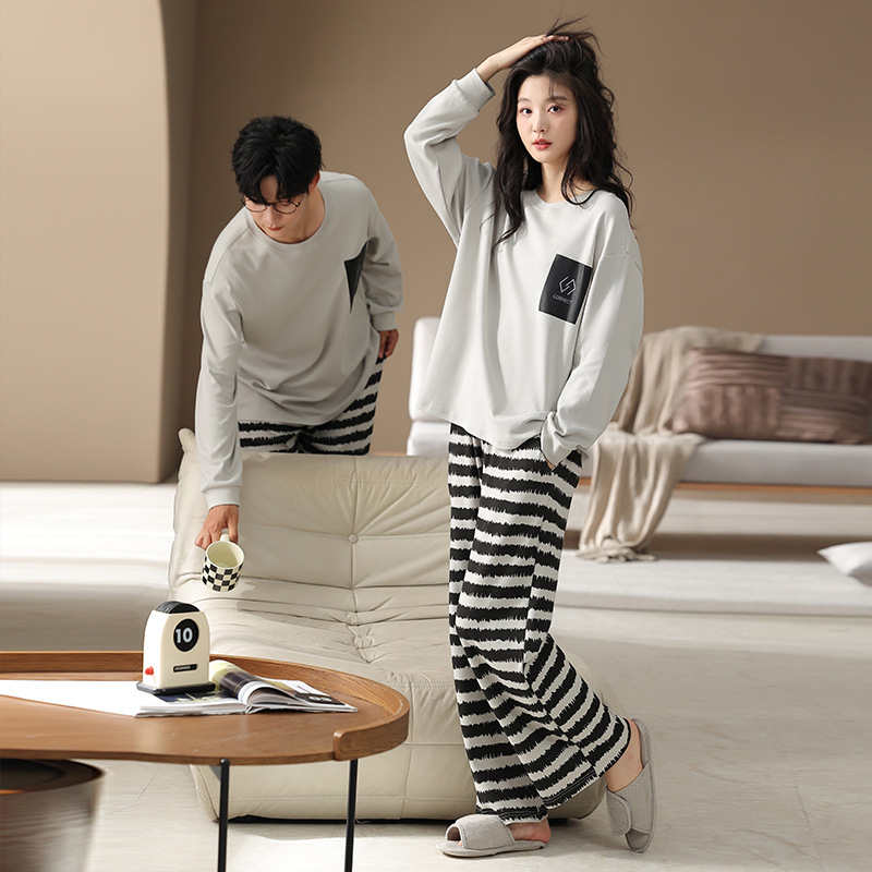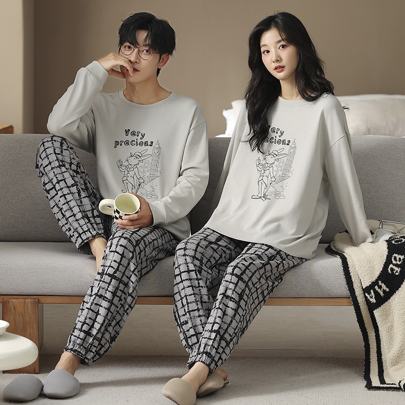 2026 새로운 커플 잠옷 여성 봄, 가을 순수 코튼 긴팔 가을, 겨울 캐주얼 남성 옷깃 홈웨어 세트스토어 가기
